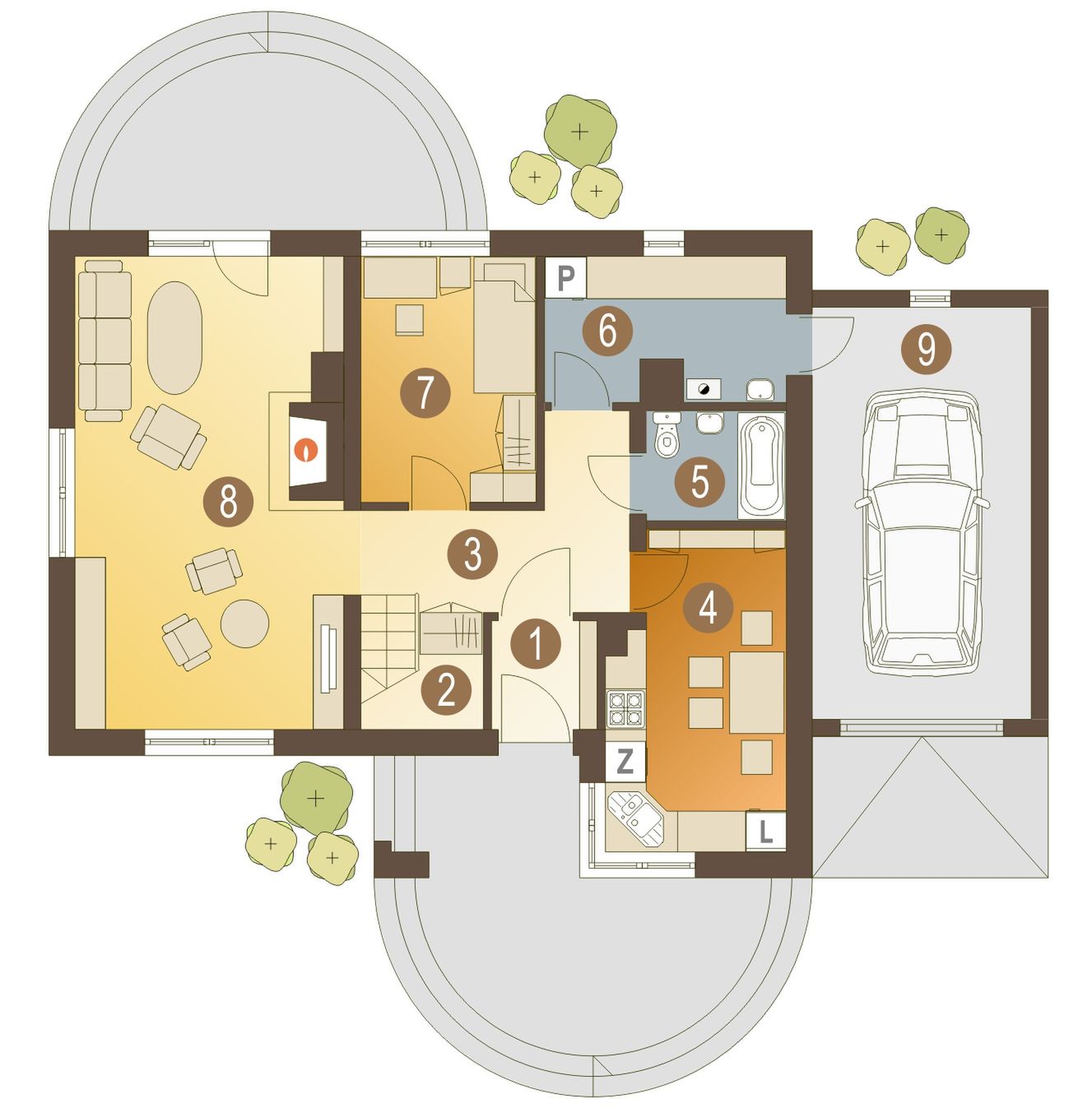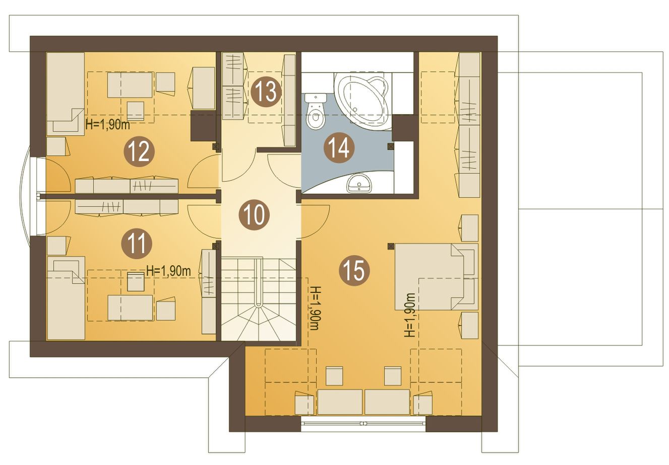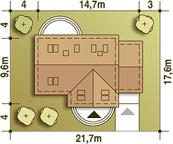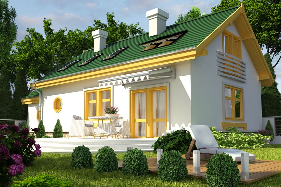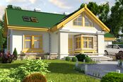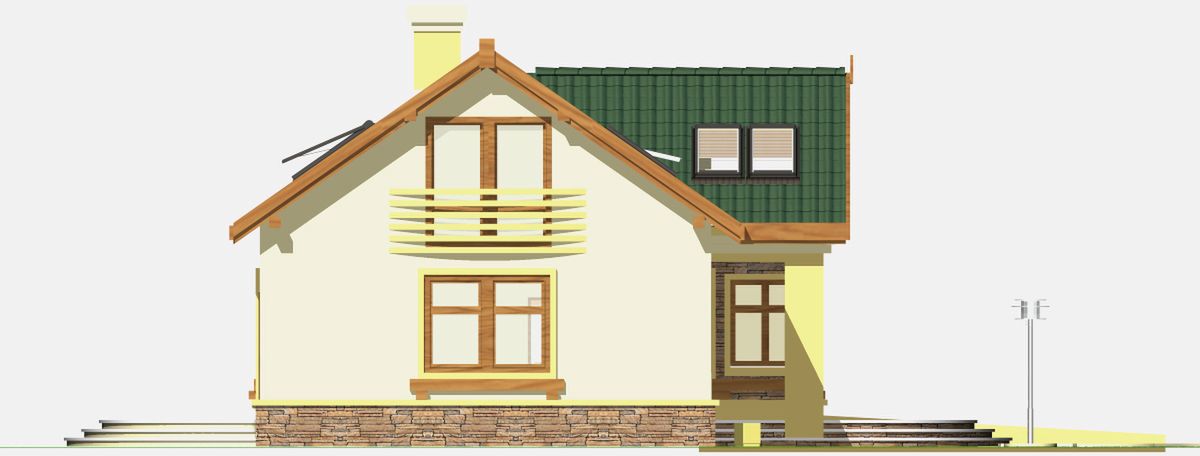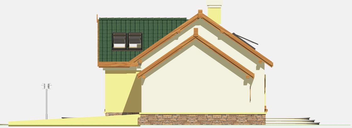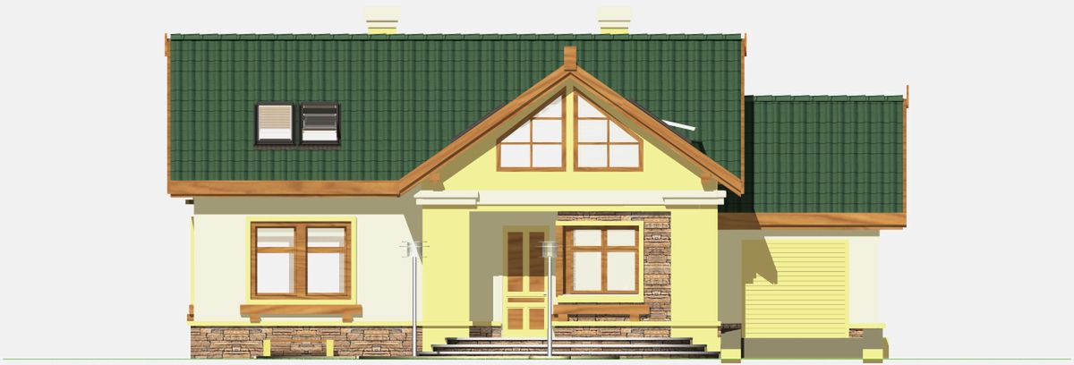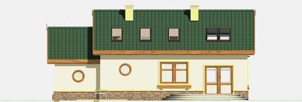 Graficzne opracowanie rzutów poglądowych widocznych na karcie projektu zostało wykonane przez Extradom.pl. Prezentowane przez Extradom.pl wizualizacje wykonane zostały przez autora projektu i należy poczytywać je jedynie za przykład i propozycję wykończenia, wizję architektoniczną autora projektu. Ostateczne wykończenie budynku może nastąpić na wiele sposobów. Szczegółowe rozwiązania zastosowane w oferowanej dokumentacji - w tym również ilość, lokalizacje i wygląd okien, drzwi, kominów - mogą w niewielkim stopniu różnić się od prezentowanej wizualizacji budynku.