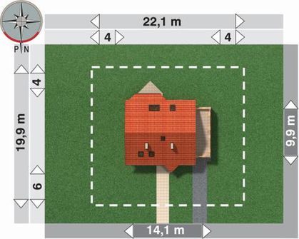Graficzne opracowanie rzutów poglądowych widocznych na karcie projektu zostało wykonane przez Extradom.pl. Prezentowane przez Extradom.pl wizualizacje wykonane zostały przez autora projektu i należy poczytywać je jedynie za przykład i propozycję wykończenia, wizję architektoniczną autora projektu. Ostateczne wykończenie budynku może nastąpić na wiele sposobów. Szczegółowe rozwiązania zastosowane w oferowanej dokumentacji - w tym również ilość, lokalizacje i wygląd okien, drzwi, kominów - mogą w niewielkim stopniu różnić się od prezentowanej wizualizacji budynku.