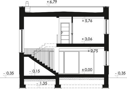 Ściany zewnętrzne: pustak ceramiczny LEIER o gr. 25cm + styropian Termo Organika o gr. 20cm + tynk. Schody: płytowe, żelbetowe, monolityczne dwubiegowe ze stopniami zabiegowymi. Strop: płyta żelbetowa monolityczna. Stropodach: stropodach niewentylowany żelbetowy, pokryty membraną dachową mocowaną mechanicznie do podłoża. Źródło ciepła: kocioł gazowy, kominek z płaszczem wodnym na biomasę i zestaw solarny (c.w.u.). Pomieszczenie gospodarcze spełnia wymagania kotłowni na paliwo stałe,w związku z czym na etapie adaptacji istnieje możliwość zmiany sposobu ogrzewania. Wentylacja: grawitacyjna. Stolarka okienna i drzwiowa: okna i drzwi PVC, rolety, brama garażowa segmentowa.