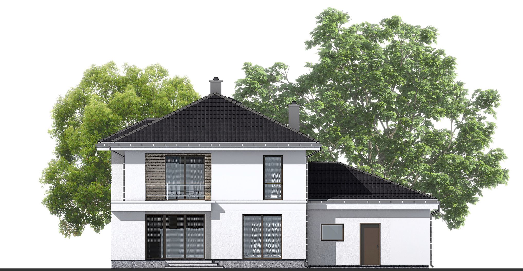 Graficzne opracowanie rzutów poglądowych widocznych na karcie projektu zostało wykonane przez Extradom.pl. Prezentowane przez Extradom.pl wizualizacje wykonane zostały przez autora projektu i należy poczytywać je jedynie za przykład i propozycję wykończenia, wizję architektoniczną autora projektu. Ostateczne wykończenie budynku może nastąpić na wiele sposobów. Szczegółowe rozwiązania zastosowane w oferowanej dokumentacji - w tym również ilość, lokalizacje i wygląd okien, drzwi, kominów - mogą w niewielkim stopniu różnić się od prezentowanej wizualizacji budynku.