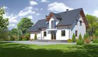 Graficzne opracowanie rzutów poglądowych widocznych na karcie projektu zostało wykonane przez Extradom.pl. Prezentowane przez Extradom.pl wizualizacje wykonane zostały przez autora projektu i należy poczytywać je jedynie za przykład i propozycję wykończenia, wizję architektoniczną autora projektu. Ostateczne wykończenie budynku może nastąpić na wiele sposobów. Szczegółowe rozwiązania zastosowane w oferowanej dokumentacji - w tym również ilość, lokalizacje i wygląd okien, drzwi, kominów - mogą w niewielkim stopniu różnić się od prezentowanej wizualizacji budynku.