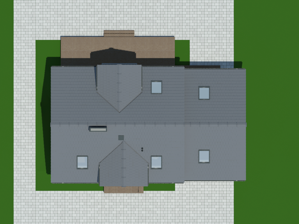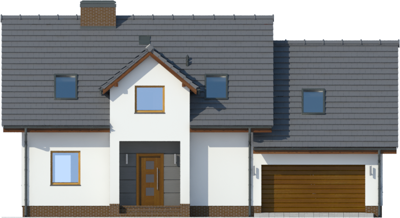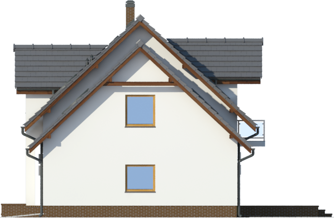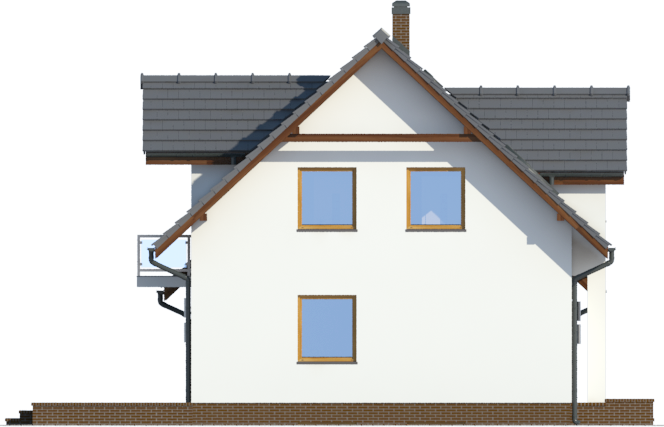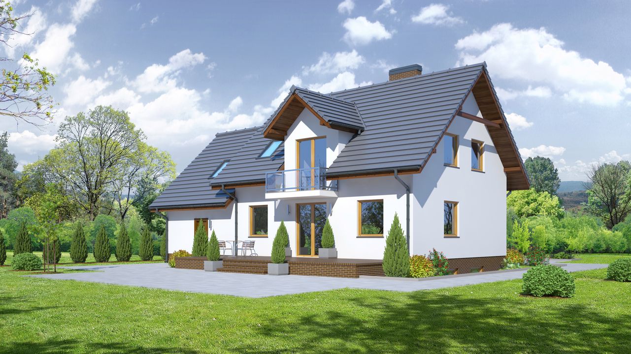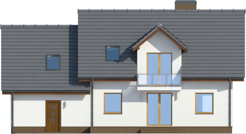 Graficzne opracowanie rzutów poglądowych widocznych na karcie projektu zostało wykonane przez Extradom.pl. Prezentowane przez Extradom.pl wizualizacje wykonane zostały przez autora projektu i należy poczytywać je jedynie za przykład i propozycję wykończenia, wizję architektoniczną autora projektu. Ostateczne wykończenie budynku może nastąpić na wiele sposobów. Szczegółowe rozwiązania zastosowane w oferowanej dokumentacji - w tym również ilość, lokalizacje i wygląd okien, drzwi, kominów - mogą w niewielkim stopniu różnić się od prezentowanej wizualizacji budynku.