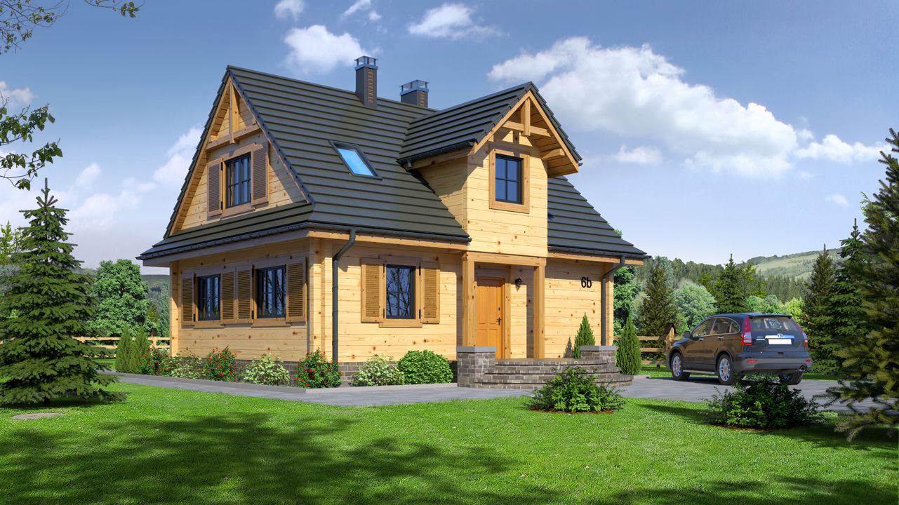 Wysokość ścianki kolankowej: 0.55 m. Strop: drewniany. Pokrycie dachu: dachówka gontopodobna Gerard Corona. Ściany zewnętrzne: płazy drewniane + izolacja natryskowa Icynene. Ściany wewnętrzne: płazy drewniane. Typ ogrzewania: Kocioł gazowy. Zastosowano systemy kominowe Poujoulat.