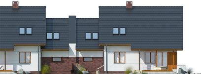 Graficzne opracowanie rzutów poglądowych widocznych na karcie projektu zostało wykonane przez Extradom.pl. Prezentowane przez Extradom.pl wizualizacje wykonane zostały przez autora projektu i należy poczytywać je jedynie za przykład i propozycję wykończenia, wizję architektoniczną autora projektu. Ostateczne wykończenie budynku może nastąpić na wiele sposobów. Szczegółowe rozwiązania zastosowane w oferowanej dokumentacji - w tym również ilość, lokalizacje i wygląd okien, drzwi, kominów - mogą w niewielkim stopniu różnić się od prezentowanej wizualizacji budynku.