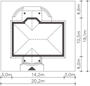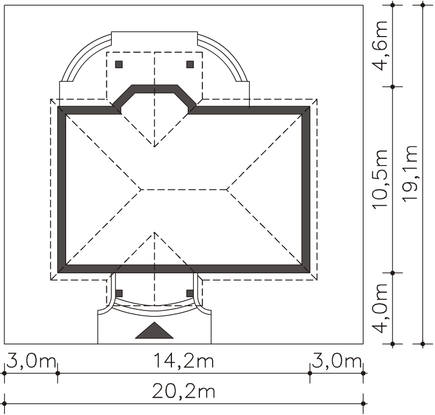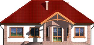 Graficzne opracowanie rzutów poglądowych widocznych na karcie projektu zostało wykonane przez Extradom.pl. Prezentowane przez Extradom.pl wizualizacje wykonane zostały przez autora projektu i należy poczytywać je jedynie za przykład i propozycję wykończenia, wizję architektoniczną autora projektu. Ostateczne wykończenie budynku może nastąpić na wiele sposobów. Szczegółowe rozwiązania zastosowane w oferowanej dokumentacji - w tym również ilość, lokalizacje i wygląd okien, drzwi, kominów - mogą w niewielkim stopniu różnić się od prezentowanej wizualizacji budynku.