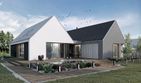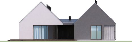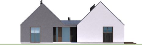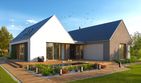 Graficzne opracowanie rzutów poglądowych widocznych na karcie projektu zostało wykonane przez Extradom.pl. Prezentowane przez Extradom.pl wizualizacje wykonane zostały przez autora projektu i należy poczytywać je jedynie za przykład i propozycję wykończenia, wizję architektoniczną autora projektu. Ostateczne wykończenie budynku może nastąpić na wiele sposobów. Szczegółowe rozwiązania zastosowane w oferowanej dokumentacji - w tym również ilość, lokalizacje i wygląd okien, drzwi, kominów - mogą w niewielkim stopniu różnić się od prezentowanej wizualizacji budynku.