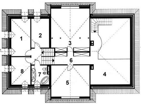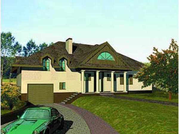 Graficzne opracowanie rzutów poglądowych widocznych na karcie projektu zostało wykonane przez Extradom.pl. Prezentowane przez Extradom.pl wizualizacje wykonane zostały przez autora projektu i należy poczytywać je jedynie za przykład i propozycję wykończenia, wizję architektoniczną autora projektu. Ostateczne wykończenie budynku może nastąpić na wiele sposobów. Szczegółowe rozwiązania zastosowane w oferowanej dokumentacji - w tym również ilość, lokalizacje i wygląd okien, drzwi, kominów - mogą w niewielkim stopniu różnić się od prezentowanej wizualizacji budynku.