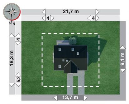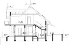 Graficzne opracowanie rzutów poglądowych widocznych na karcie projektu zostało wykonane przez Extradom.pl. Prezentowane przez Extradom.pl wizualizacje wykonane zostały przez autora projektu i należy poczytywać je jedynie za przykład i propozycję wykończenia, wizję architektoniczną autora projektu. Ostateczne wykończenie budynku może nastąpić na wiele sposobów. Szczegółowe rozwiązania zastosowane w oferowanej dokumentacji - w tym również ilość, lokalizacje i wygląd okien, drzwi, kominów - mogą w niewielkim stopniu różnić się od prezentowanej wizualizacji budynku.