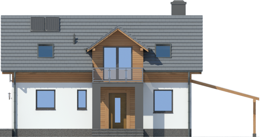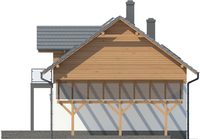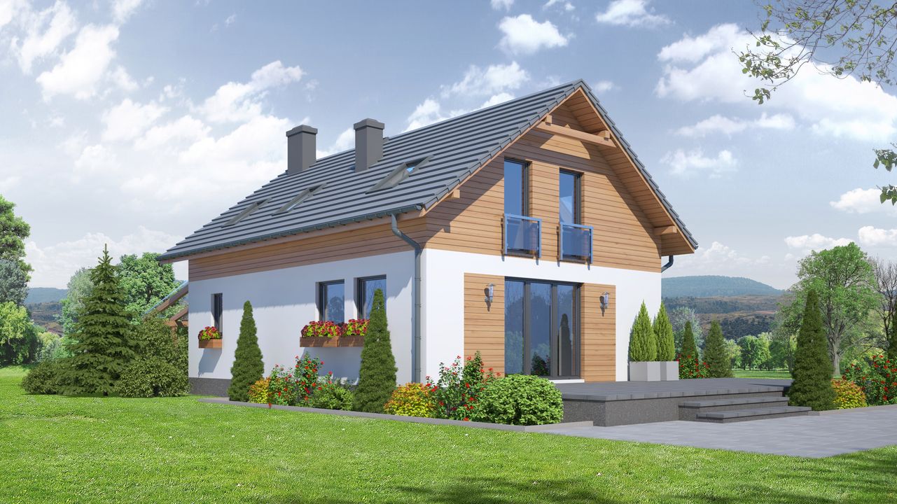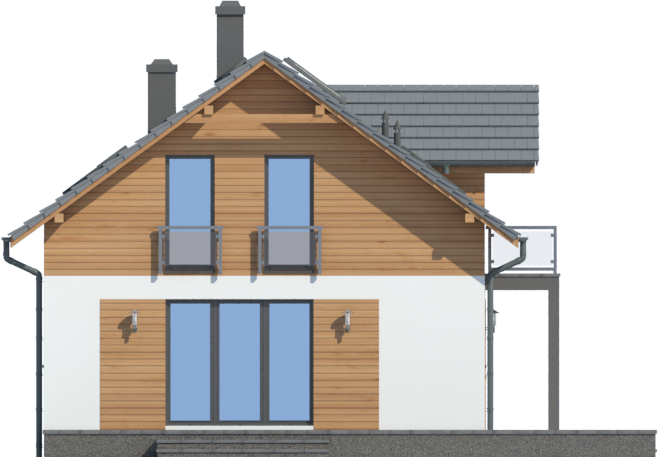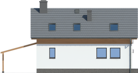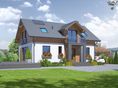 Graficzne opracowanie rzutów poglądowych widocznych na karcie projektu zostało wykonane przez Extradom.pl. Prezentowane przez Extradom.pl wizualizacje wykonane zostały przez autora projektu i należy poczytywać je jedynie za przykład i propozycję wykończenia, wizję architektoniczną autora projektu. Ostateczne wykończenie budynku może nastąpić na wiele sposobów. Szczegółowe rozwiązania zastosowane w oferowanej dokumentacji - w tym również ilość, lokalizacje i wygląd okien, drzwi, kominów - mogą w niewielkim stopniu różnić się od prezentowanej wizualizacji budynku.