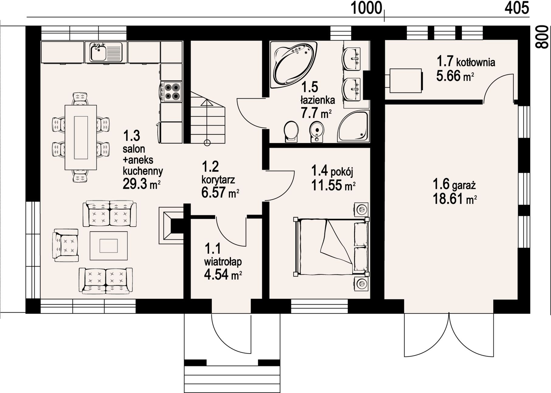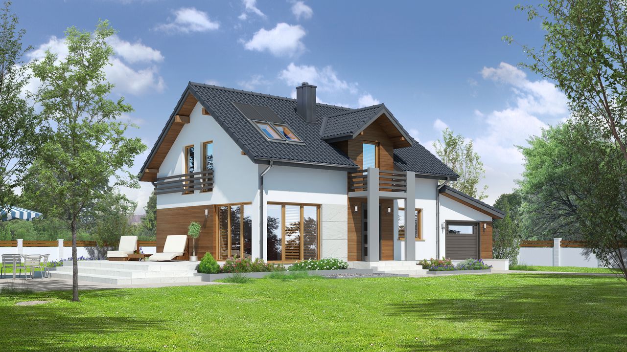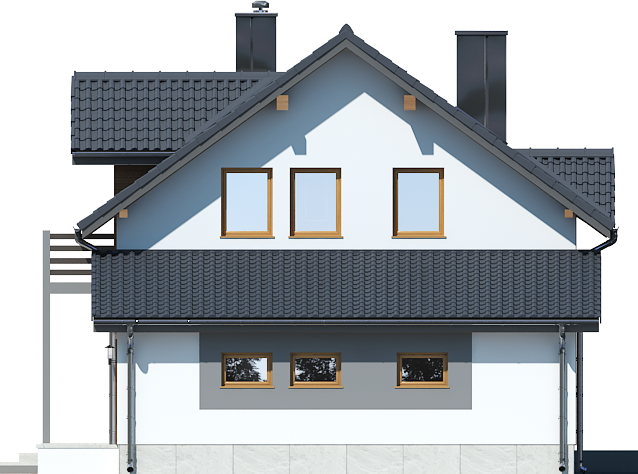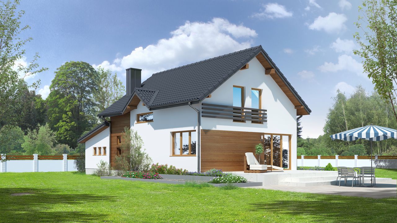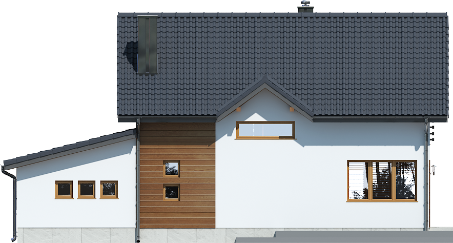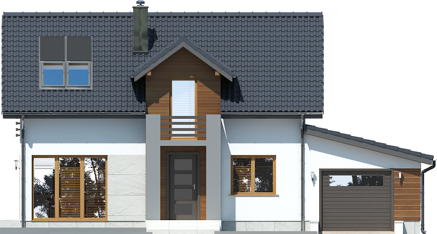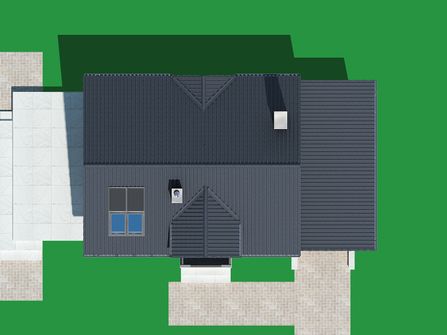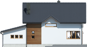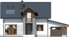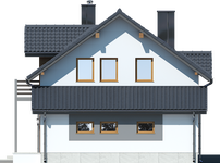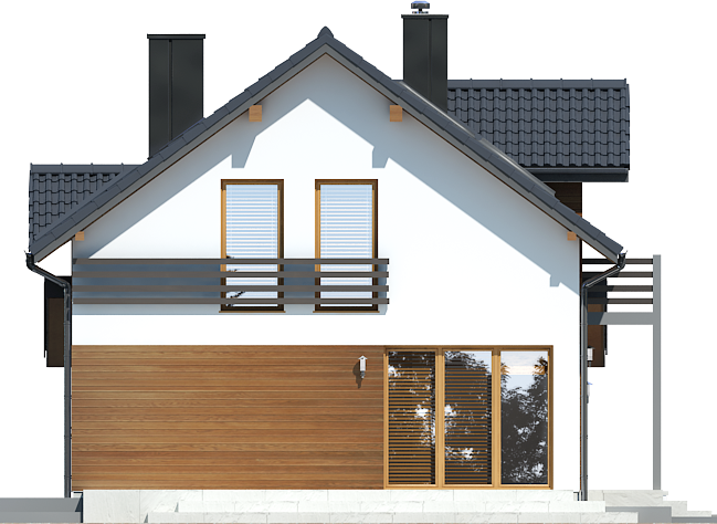 Graficzne opracowanie rzutów poglądowych widocznych na karcie projektu zostało wykonane przez Extradom.pl. Prezentowane przez Extradom.pl wizualizacje wykonane zostały przez autora projektu i należy poczytywać je jedynie za przykład i propozycję wykończenia, wizję architektoniczną autora projektu. Ostateczne wykończenie budynku może nastąpić na wiele sposobów. Szczegółowe rozwiązania zastosowane w oferowanej dokumentacji - w tym również ilość, lokalizacje i wygląd okien, drzwi, kominów - mogą w niewielkim stopniu różnić się od prezentowanej wizualizacji budynku.