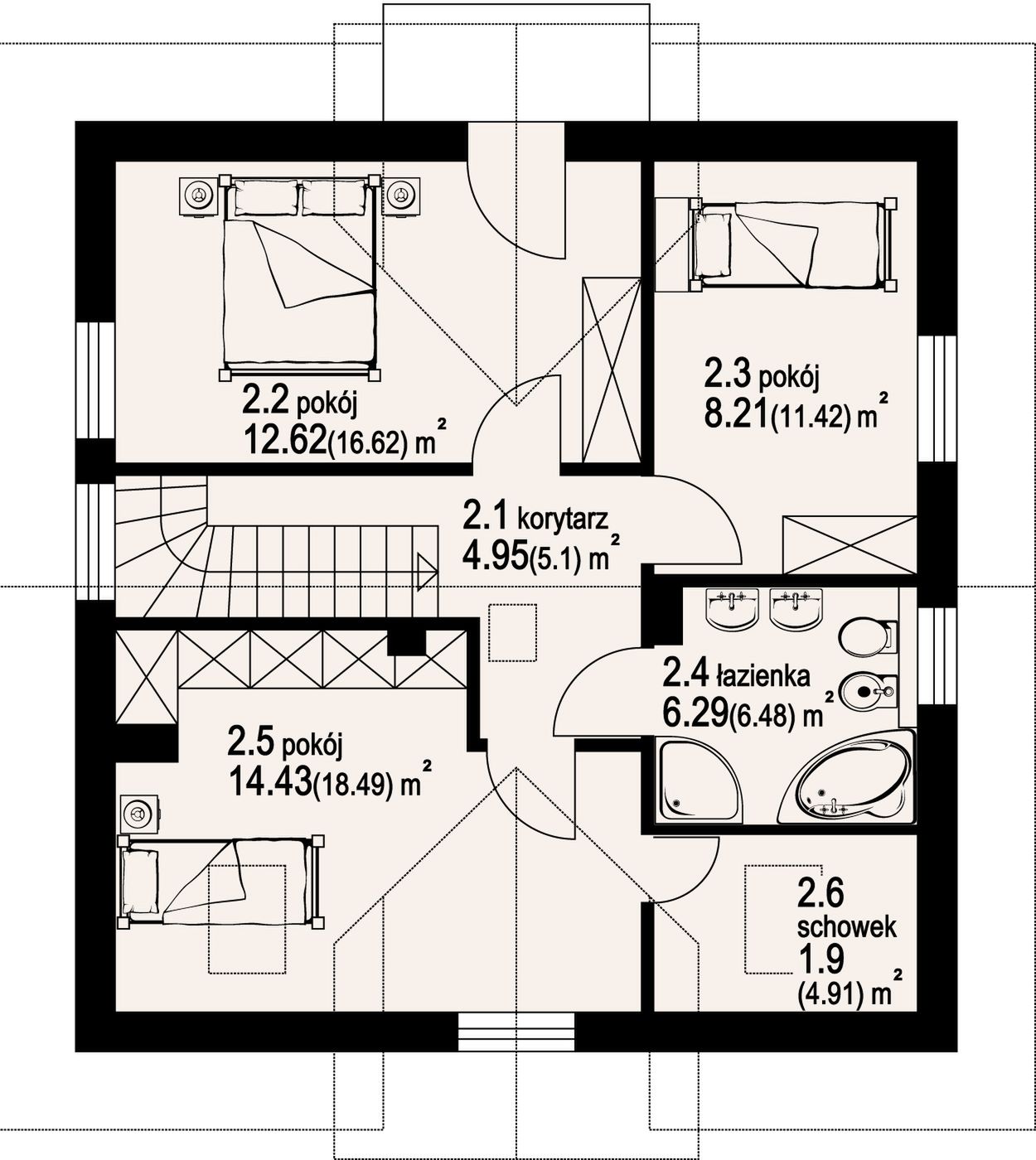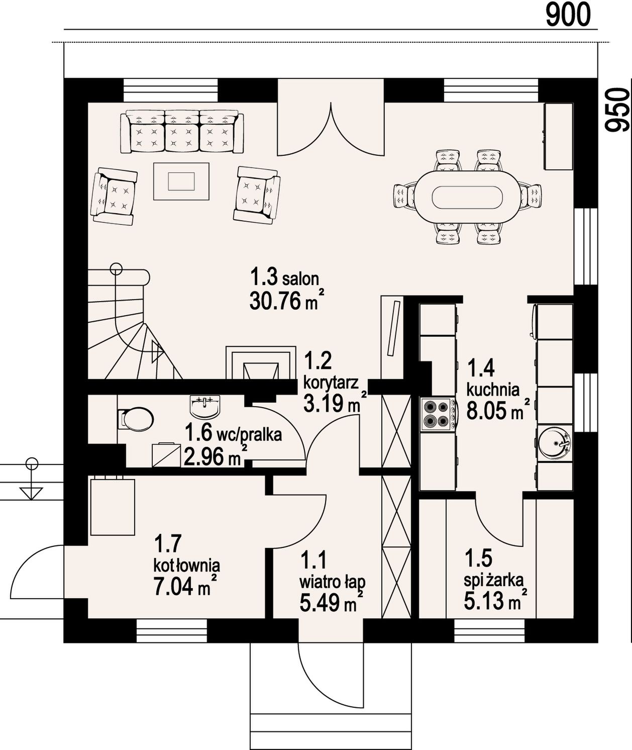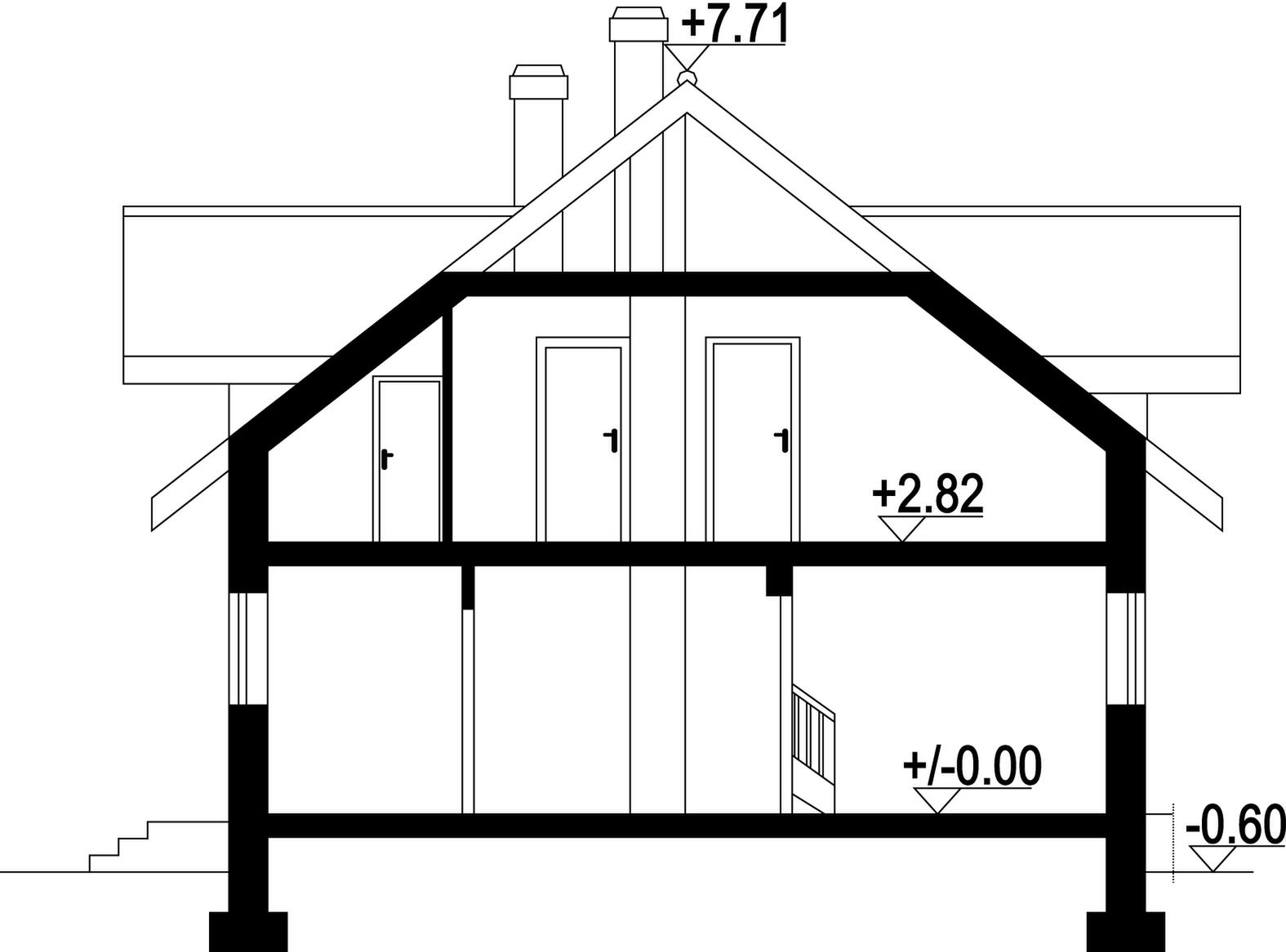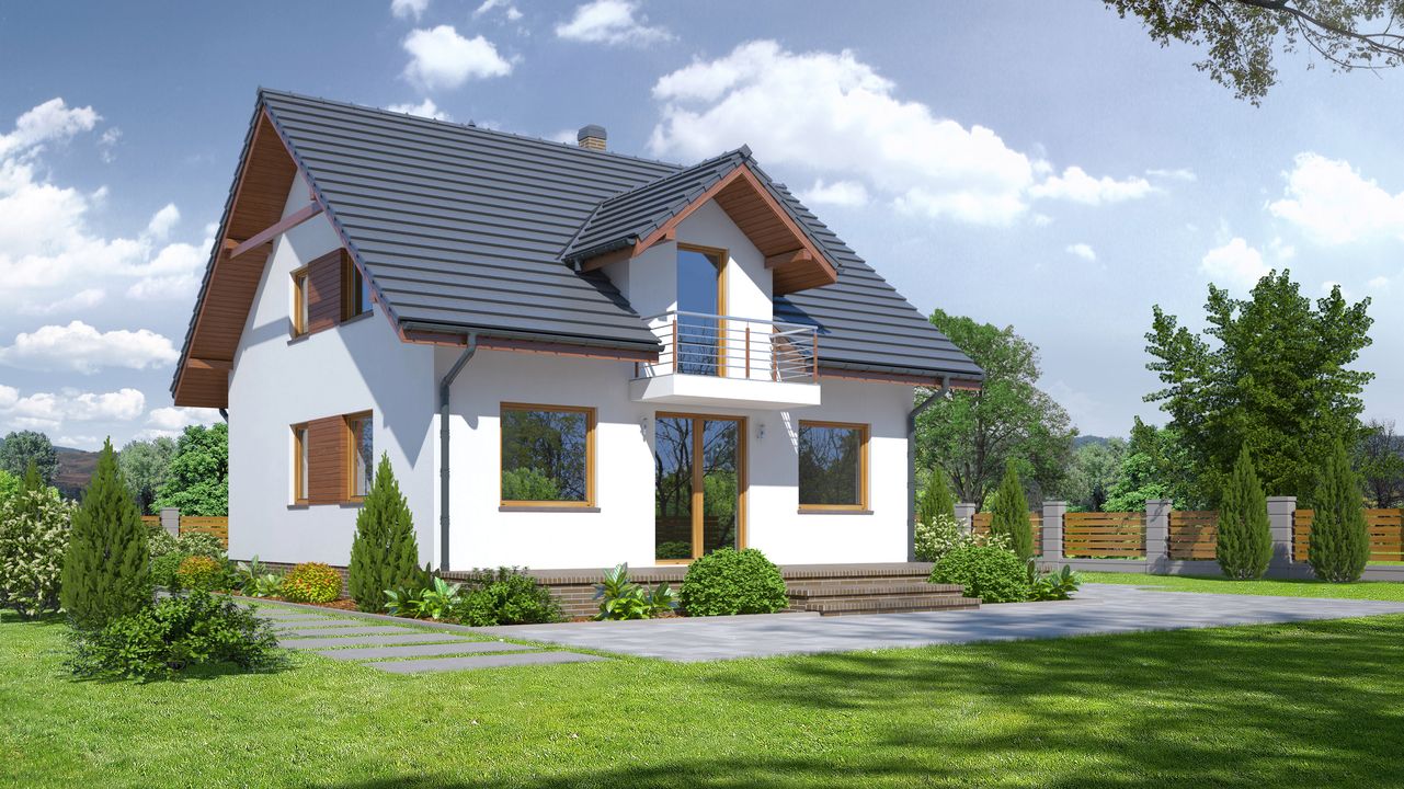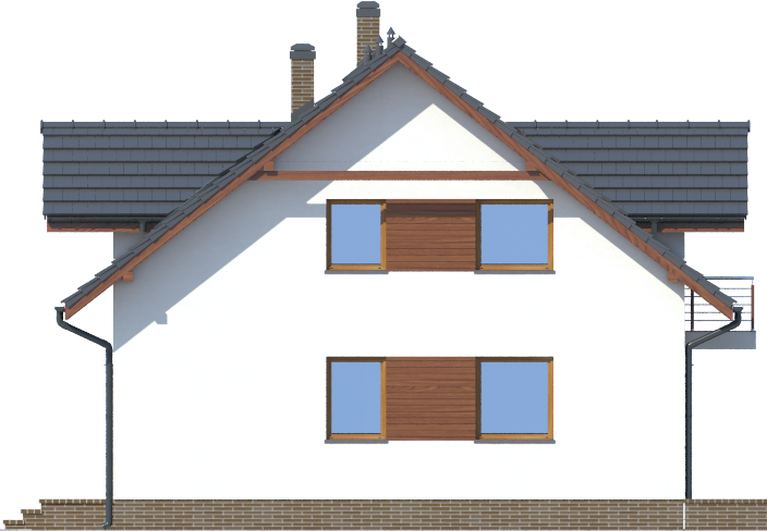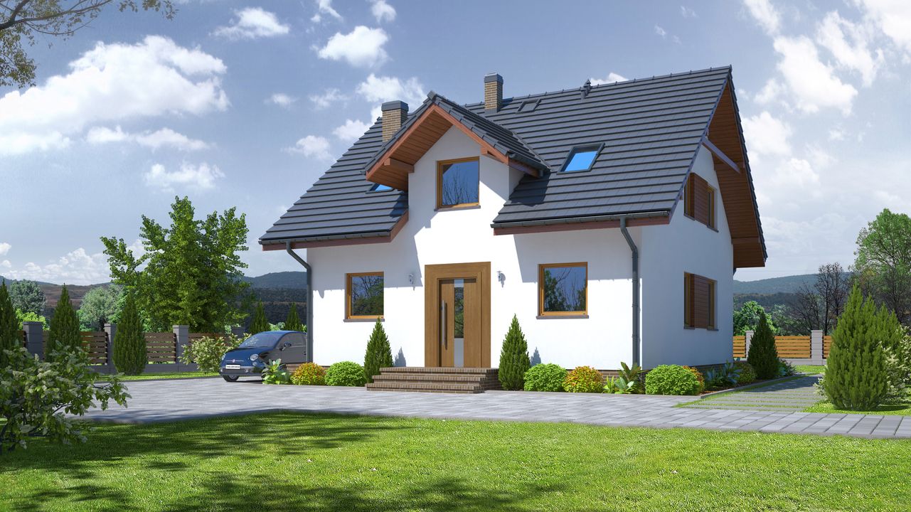 Graficzne opracowanie rzutów poglądowych widocznych na karcie projektu zostało wykonane przez Extradom.pl. Prezentowane przez Extradom.pl wizualizacje wykonane zostały przez autora projektu i należy poczytywać je jedynie za przykład i propozycję wykończenia, wizję architektoniczną autora projektu. Ostateczne wykończenie budynku może nastąpić na wiele sposobów. Szczegółowe rozwiązania zastosowane w oferowanej dokumentacji - w tym również ilość, lokalizacje i wygląd okien, drzwi, kominów - mogą w niewielkim stopniu różnić się od prezentowanej wizualizacji budynku.