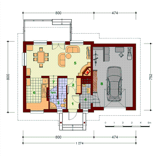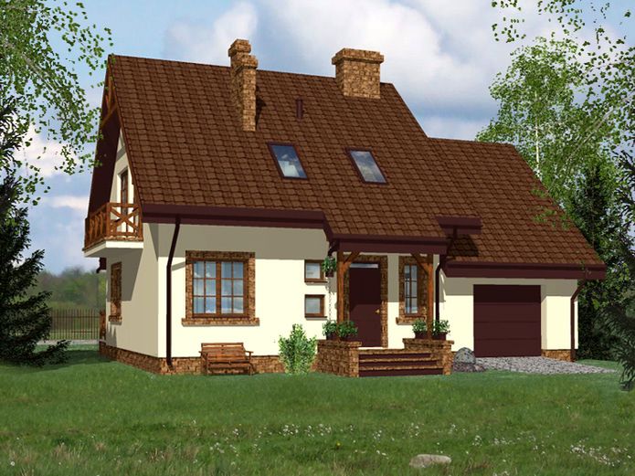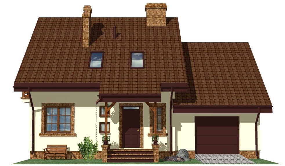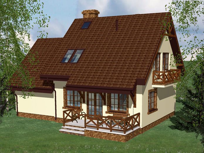 - Fundamenty: ściany fundamentowe np. z bloczka betonowego + ławy żelbetowe - ciepłe ściany zewnętrzne : pustak gazobetonowy 24cm (beton komórkowy) + styropian 12 cm - elewacje: tynk cienkowarstwowy, detale drewniane, elementy z płytek gresowych itp.; - stropy: gęstożebrowe, schody żelbetowe; - więźba drewniana, pokrycie dachu: blachodachówka lub dachówka