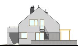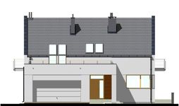 Graficzne opracowanie rzutów poglądowych widocznych na karcie projektu zostało wykonane przez Extradom.pl. Prezentowane przez Extradom.pl wizualizacje wykonane zostały przez autora projektu i należy poczytywać je jedynie za przykład i propozycję wykończenia, wizję architektoniczną autora projektu. Ostateczne wykończenie budynku może nastąpić na wiele sposobów. Szczegółowe rozwiązania zastosowane w oferowanej dokumentacji - w tym również ilość, lokalizacje i wygląd okien, drzwi, kominów - mogą w niewielkim stopniu różnić się od prezentowanej wizualizacji budynku.