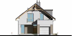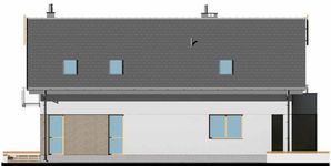 Graficzne opracowanie rzutów poglądowych widocznych na karcie projektu zostało wykonane przez Extradom.pl. Prezentowane przez Extradom.pl wizualizacje wykonane zostały przez autora projektu i należy poczytywać je jedynie za przykład i propozycję wykończenia, wizję architektoniczną autora projektu. Ostateczne wykończenie budynku może nastąpić na wiele sposobów. Szczegółowe rozwiązania zastosowane w oferowanej dokumentacji - w tym również ilość, lokalizacje i wygląd okien, drzwi, kominów - mogą w niewielkim stopniu różnić się od prezentowanej wizualizacji budynku.