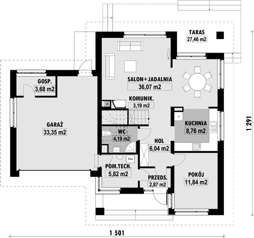 PROJEKT Z BUDOWĄ Istnieje możliwość zaadaptowania tego projektu do technologii prefabrykowanej/modułowej i budowy nawet w 6 miesięcy ze stałym kosztem budowy