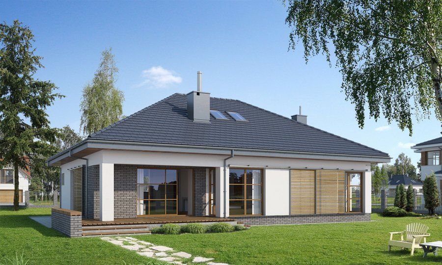 Od początku zależało mi na tym, aby wszystkie pomieszczenia w nowym domu znajdowały się na jednym poziomie. Bardzo istotny był również niezbyt duży metraż oraz garaż uwzględniony w bryle budynków. Spośród propozycji spełniających powyższe wymagania, do gustu najbardziej przypadł nam projekt domu parterowego E-111 WAX1013. Jego realizacja przebiegła sprawnie i zgodnie z wcześniej założonym planem. Dokumentacja techniczna była poprawnie sporządzona, a fachowcy świetnie poradzili sobie z powierzonymi pracami. Cała inwestycja łącznie z wykończeniami zajęła ok. 2,5 roku.Do wymurowania ścian użyliśmy ceramicznych pustaków Porotherm, a dach pokryliśmy dachówką. Strop tworzy tradycyjna żelbetowa konstrukcja. Jest to mój trzeci dom z takim stropem, więc mam do tej metody pełne zaufanie. Pod względem konstrukcyjnym jest solidniejsza niż system Teriva, co z racji działki usytuowanej na terenie zagrożonym szkodami górniczymi było dla nas szczególnie ważne. Muszę przyznać, że koszty naszej inwestycji przekroczyły kwotę oszacowaną w kosztorysie, aczkolwiek uważam, iż decydując się na budowę domu zawsze należy liczyć się z wyższymi wydatkami w stosunku do sugerowanych.Projekt domu E-111 WAX1013 przewiduje dużą ilość przeszkleń, więc aby nieco zmniejszyć koszty stolarki otworowej zamieniłem część okien tarasowych na te o tradycyjnych wymiarach z parapetem. Układ pomieszczeń od początku wydał mi się funkcjonalnie przemyślany, dlatego w tej kwesti wszystko wykonałem zgodnie z oryginalną wersją. Jedyne co ewentualnie chciałbym zmienić na chwilę obecną to większe pogłębienie wnęk na szafy.Jesteśmy bardzo zadowoleni z wyboru projektu domu parterowego z garażem E-111 WAX1013. Wszystko co potrzebne do w pełni komfortowego życia znajduje się na jednej kondygnacji, co jest naprawdę praktycznym rozwiązaniem. Część naszych znajomych posiada domy piętrowe, a podczas odwiedzin zgodnie twierdzą, że poruszanie się po naszym domu jest bardzo wygodne. Rozmieszczenie wnętrza jest świetnie zaplanowane. Podoba mi się fakt, iż garaż oraz kotłownia zlokalizowane są w odrębnej strefie niż część mieszkalna, a wejście do tych pomieszczeń znajduje się w przedsionku. Dodatkowo taki układ daje możliwość zrobienia w tym miejscu klatki schodowej, jeśli w przyszłości zaszłaby potrzeba użytkowego zaadaptowania poddasza na rzecz uzyskania niezależnego mieszkania z osobnym wejściem dla syna. Elementem, który również niesamowicie mnie satysfakcjonuje jest zadaszony taras pozwalający na spędzania wolnego czasu na świeżym powietrzu nawet podczas deszczu. Pozdrawiam.