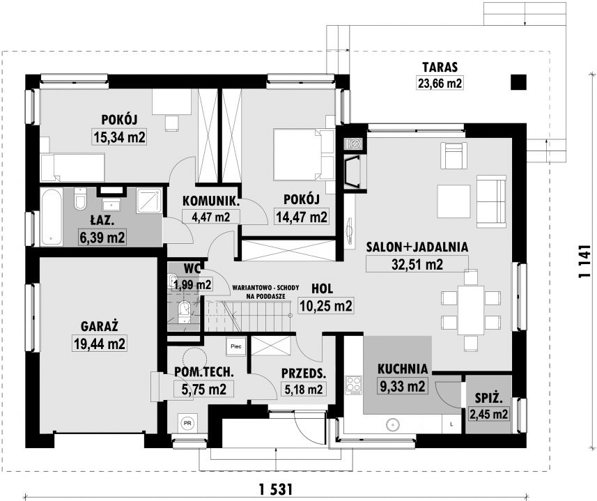 PROJEKT Z BUDOWĄ Istnieje możliwość zaadaptowania tego projektu do technologii prefabrykowanej/modułowej i budowy nawet w 6 miesięcy ze stałym kosztem budowy