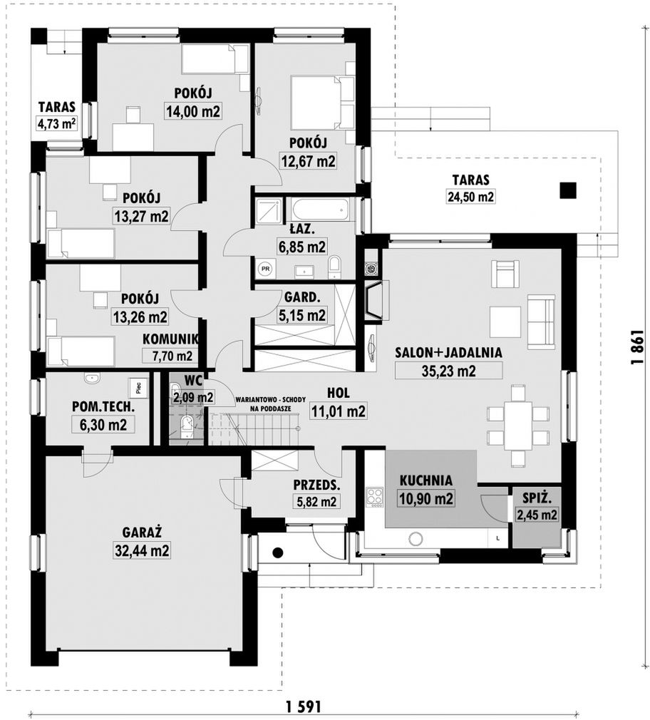 PROJEKT Z BUDOWĄ Istnieje możliwość zaadaptowania tego projektu do technologii prefabrykowanej/modułowej i budowy nawet w 6 miesięcy ze stałym kosztem budowy