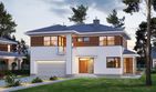 Graficzne opracowanie rzutów poglądowych widocznych na karcie projektu zostało wykonane przez Extradom.pl. Prezentowane przez Extradom.pl wizualizacje wykonane zostały przez autora projektu i należy poczytywać je jedynie za przykład i propozycję wykończenia, wizję architektoniczną autora projektu. Ostateczne wykończenie budynku może nastąpić na wiele sposobów. Szczegółowe rozwiązania zastosowane w oferowanej dokumentacji - w tym również ilość, lokalizacje i wygląd okien, drzwi, kominów - mogą w niewielkim stopniu różnić się od prezentowanej wizualizacji budynku.