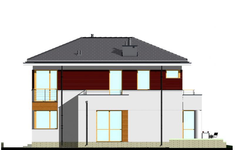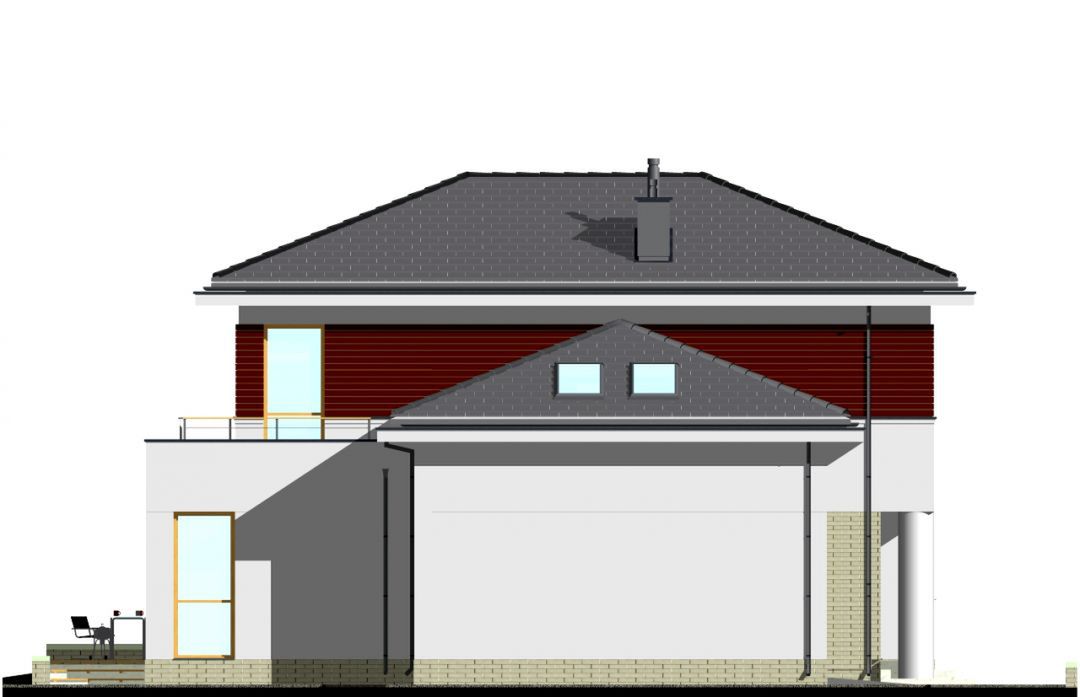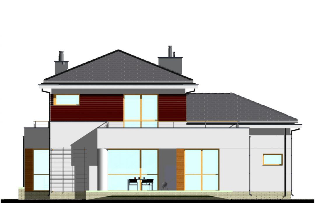 Graficzne opracowanie rzutów poglądowych widocznych na karcie projektu zostało wykonane przez Extradom.pl. Prezentowane przez Extradom.pl wizualizacje wykonane zostały przez autora projektu i należy poczytywać je jedynie za przykład i propozycję wykończenia, wizję architektoniczną autora projektu. Ostateczne wykończenie budynku może nastąpić na wiele sposobów. Szczegółowe rozwiązania zastosowane w oferowanej dokumentacji - w tym również ilość, lokalizacje i wygląd okien, drzwi, kominów - mogą w niewielkim stopniu różnić się od prezentowanej wizualizacji budynku.