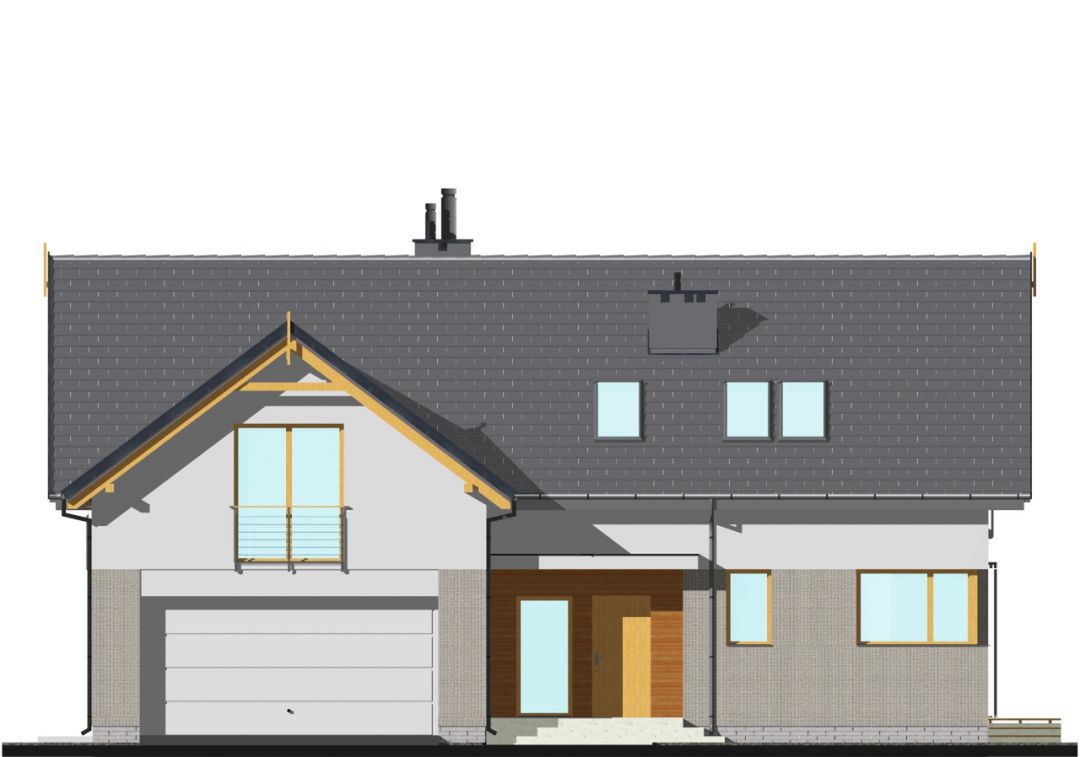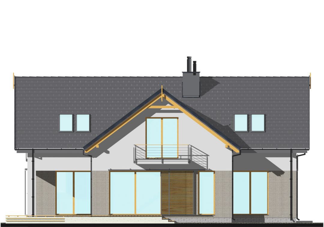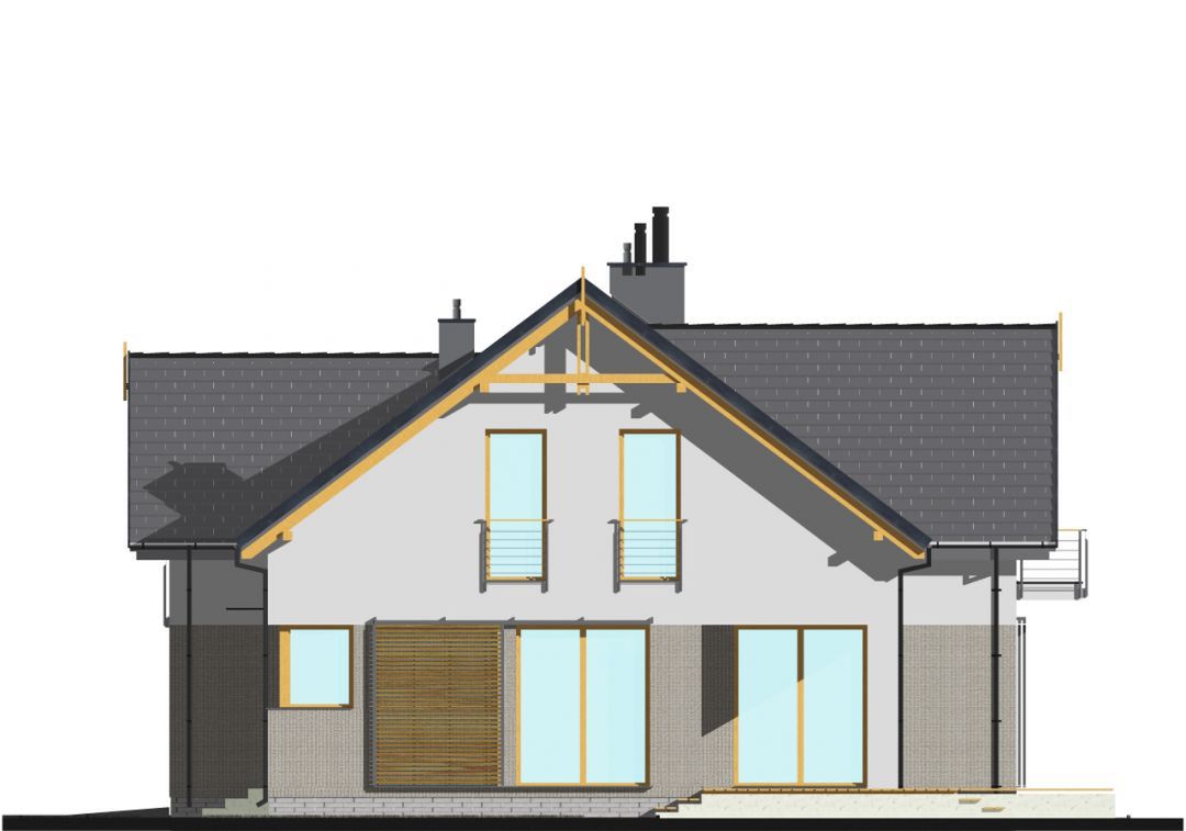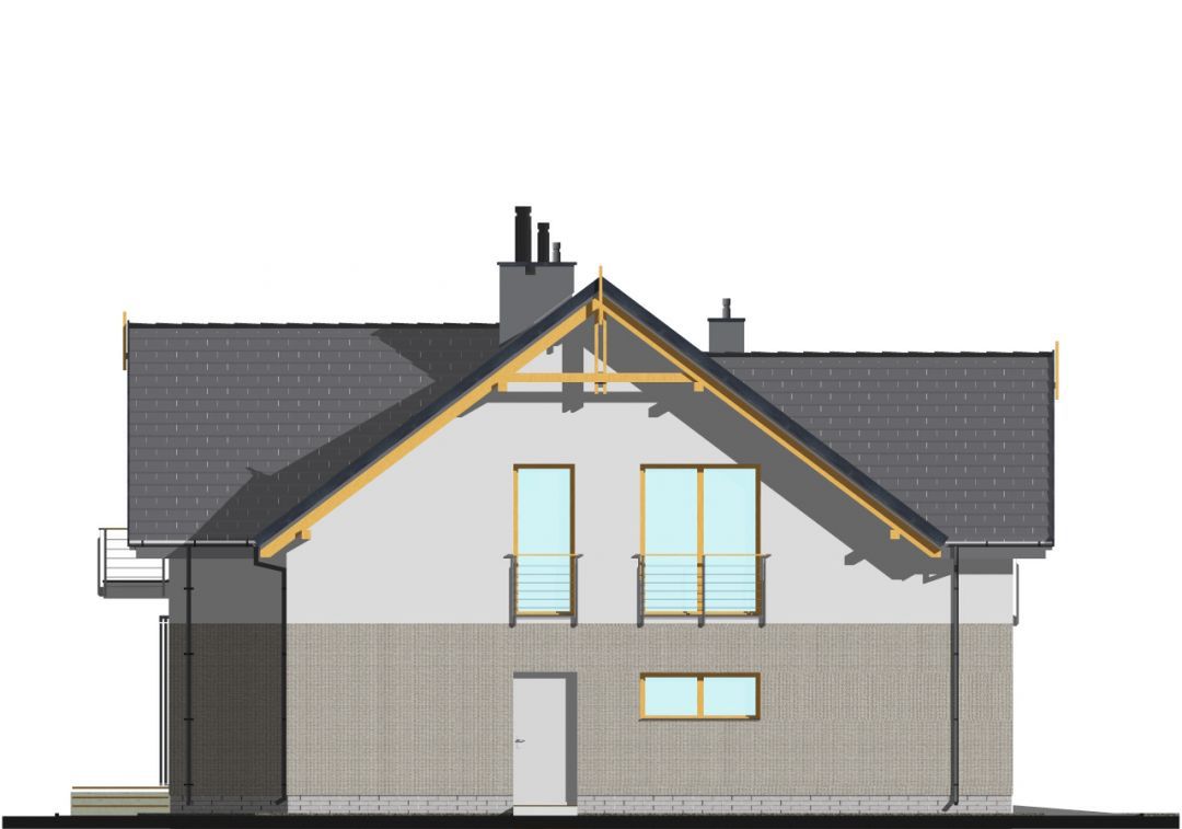 Graficzne opracowanie rzutów poglądowych widocznych na karcie projektu zostało wykonane przez Extradom.pl. Prezentowane przez Extradom.pl wizualizacje wykonane zostały przez autora projektu i należy poczytywać je jedynie za przykład i propozycję wykończenia, wizję architektoniczną autora projektu. Ostateczne wykończenie budynku może nastąpić na wiele sposobów. Szczegółowe rozwiązania zastosowane w oferowanej dokumentacji - w tym również ilość, lokalizacje i wygląd okien, drzwi, kominów - mogą w niewielkim stopniu różnić się od prezentowanej wizualizacji budynku.
