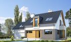 Graficzne opracowanie rzutów poglądowych widocznych na karcie projektu zostało wykonane przez Extradom.pl. Prezentowane przez Extradom.pl wizualizacje wykonane zostały przez autora projektu i należy poczytywać je jedynie za przykład i propozycję wykończenia, wizję architektoniczną autora projektu. Ostateczne wykończenie budynku może nastąpić na wiele sposobów. Szczegółowe rozwiązania zastosowane w oferowanej dokumentacji - w tym również ilość, lokalizacje i wygląd okien, drzwi, kominów - mogą w niewielkim stopniu różnić się od prezentowanej wizualizacji budynku.