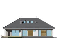 Graficzne opracowanie rzutów poglądowych widocznych na karcie projektu zostało wykonane przez Extradom.pl. Prezentowane przez Extradom.pl wizualizacje wykonane zostały przez autora projektu i należy poczytywać je jedynie za przykład i propozycję wykończenia, wizję architektoniczną autora projektu. Ostateczne wykończenie budynku może nastąpić na wiele sposobów. Szczegółowe rozwiązania zastosowane w oferowanej dokumentacji - w tym również ilość, lokalizacje i wygląd okien, drzwi, kominów - mogą w niewielkim stopniu różnić się od prezentowanej wizualizacji budynku.