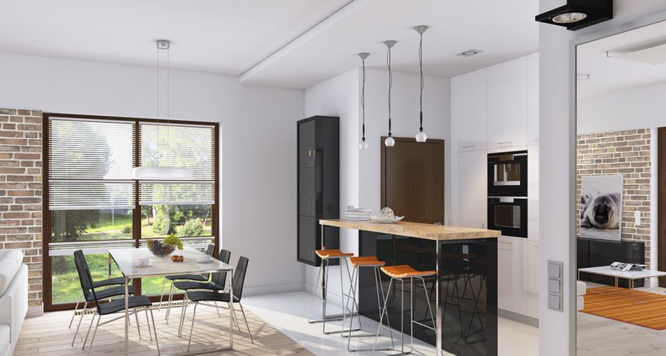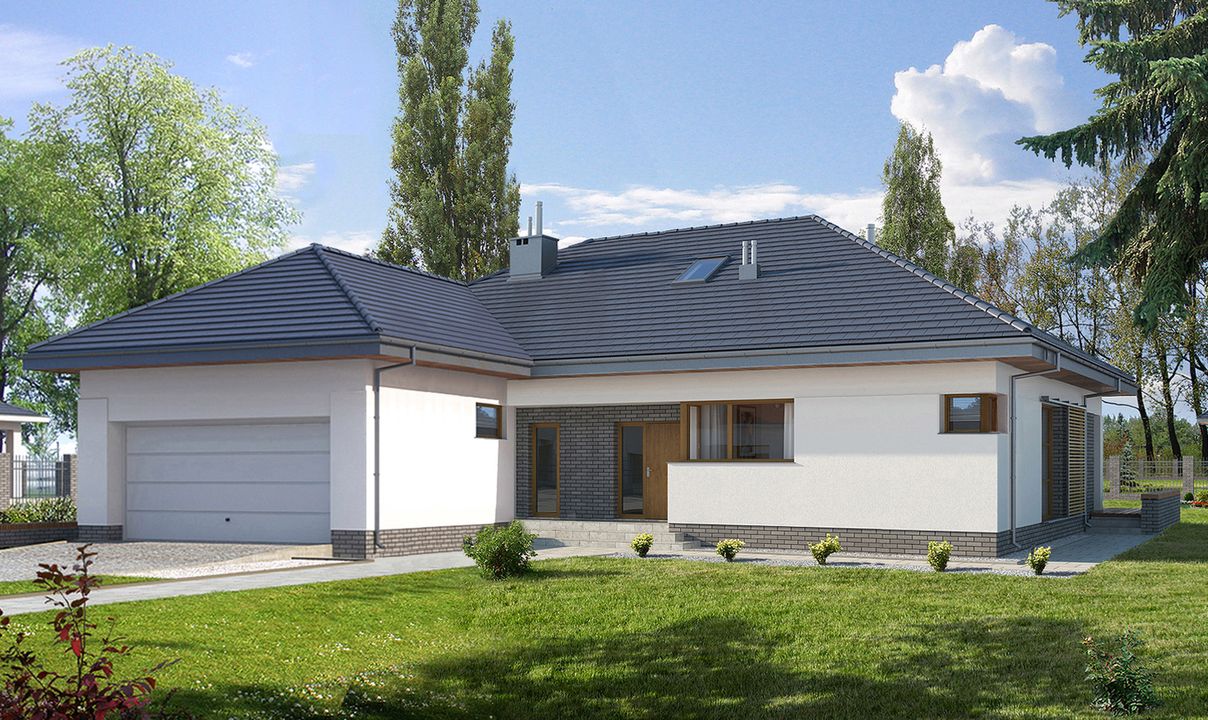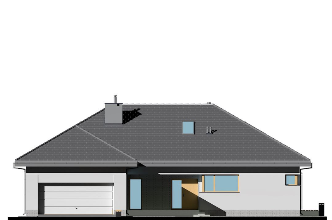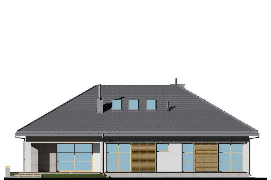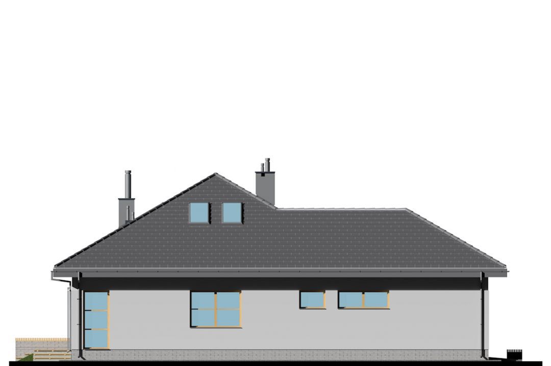 Graficzne opracowanie rzutów poglądowych widocznych na karcie projektu zostało wykonane przez Extradom.pl. Prezentowane przez Extradom.pl wizualizacje wykonane zostały przez autora projektu i należy poczytywać je jedynie za przykład i propozycję wykończenia, wizję architektoniczną autora projektu. Ostateczne wykończenie budynku może nastąpić na wiele sposobów. Szczegółowe rozwiązania zastosowane w oferowanej dokumentacji - w tym również ilość, lokalizacje i wygląd okien, drzwi, kominów - mogą w niewielkim stopniu różnić się od prezentowanej wizualizacji budynku.