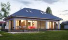Graficzne opracowanie rzutów poglądowych widocznych na karcie projektu zostało wykonane przez Extradom.pl. Prezentowane przez Extradom.pl wizualizacje wykonane zostały przez autora projektu i należy poczytywać je jedynie za przykład i propozycję wykończenia, wizję architektoniczną autora projektu. Ostateczne wykończenie budynku może nastąpić na wiele sposobów. Szczegółowe rozwiązania zastosowane w oferowanej dokumentacji - w tym również ilość, lokalizacje i wygląd okien, drzwi, kominów - mogą w niewielkim stopniu różnić się od prezentowanej wizualizacji budynku.