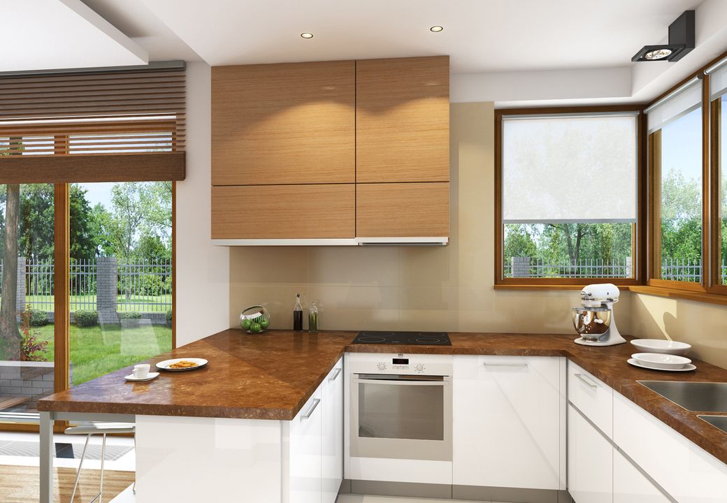 Ściany: 25cm ceramika + 18cm styropian. Strop: wylewany żelbetowy. Pokrycie dachowe: dachówka cementowa. Ocieplenie posadzki na gruncie: 20cm styropian. Ocieplenie dachu: 25-30cm wełna mineralna. Stolarka okienna: drewniana. Wykończenie zewnętrze: kamień, płytki klinkierowe lub drewno. Ogrzewanie: gazowe, grzejniki. Wentylacja: grawitacyjna.