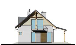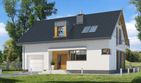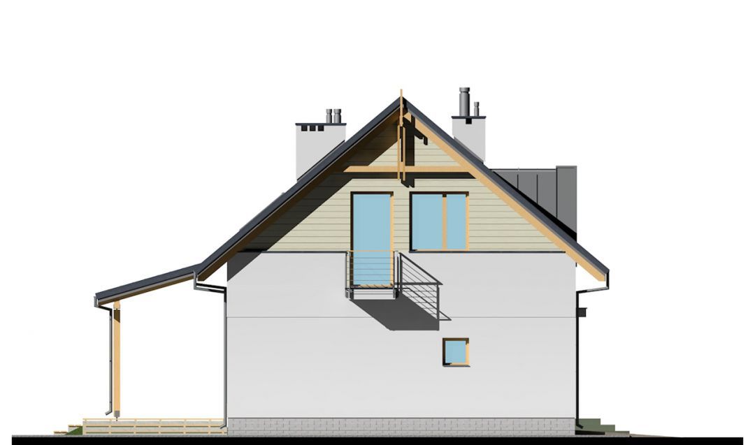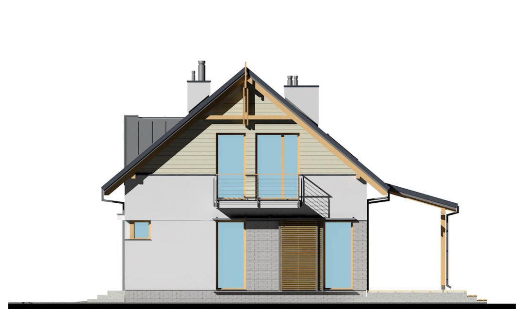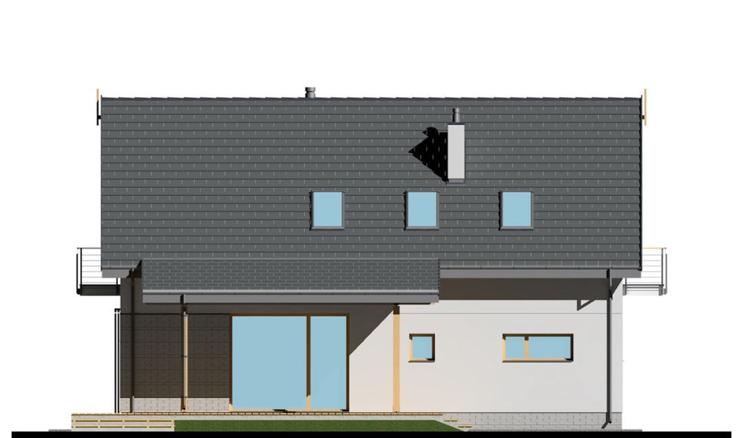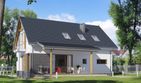 Graficzne opracowanie rzutów poglądowych widocznych na karcie projektu zostało wykonane przez Extradom.pl. Prezentowane przez Extradom.pl wizualizacje wykonane zostały przez autora projektu i należy poczytywać je jedynie za przykład i propozycję wykończenia, wizję architektoniczną autora projektu. Ostateczne wykończenie budynku może nastąpić na wiele sposobów. Szczegółowe rozwiązania zastosowane w oferowanej dokumentacji - w tym również ilość, lokalizacje i wygląd okien, drzwi, kominów - mogą w niewielkim stopniu różnić się od prezentowanej wizualizacji budynku.