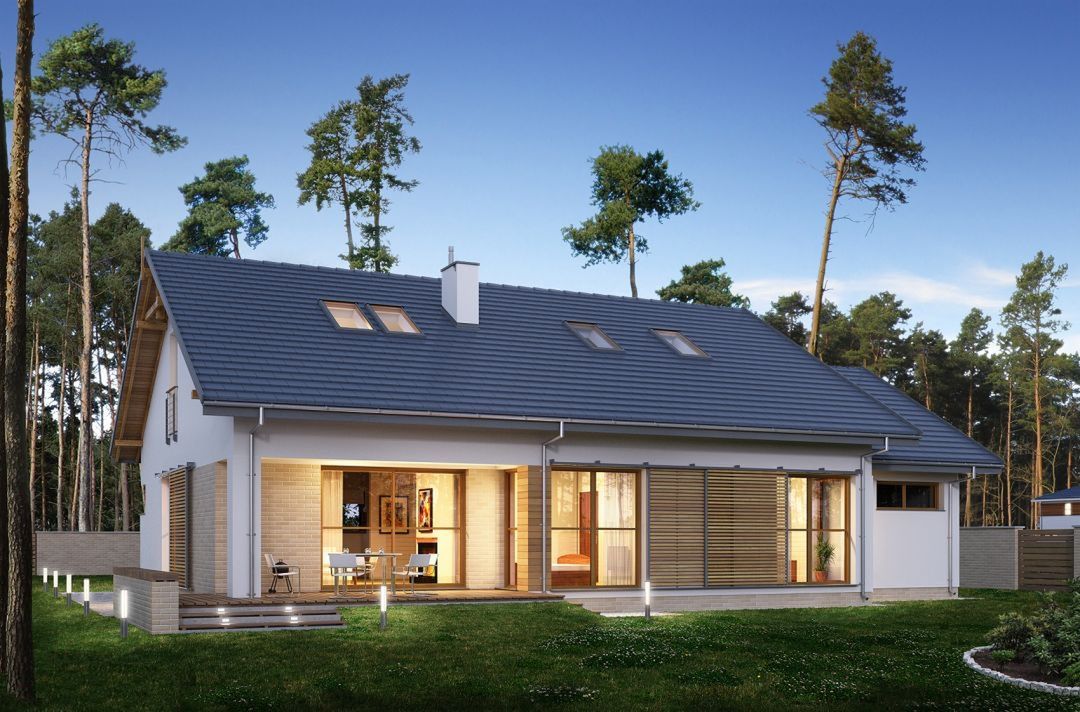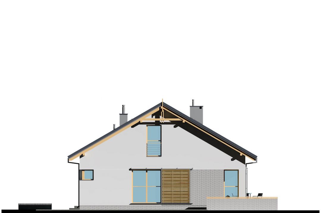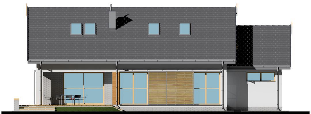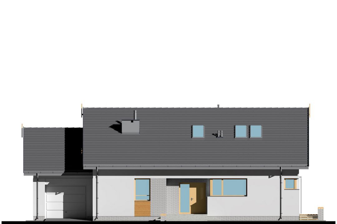 Graficzne opracowanie rzutów poglądowych widocznych na karcie projektu zostało wykonane przez Extradom.pl. Prezentowane przez Extradom.pl wizualizacje wykonane zostały przez autora projektu i należy poczytywać je jedynie za przykład i propozycję wykończenia, wizję architektoniczną autora projektu. Ostateczne wykończenie budynku może nastąpić na wiele sposobów. Szczegółowe rozwiązania zastosowane w oferowanej dokumentacji - w tym również ilość, lokalizacje i wygląd okien, drzwi, kominów - mogą w niewielkim stopniu różnić się od prezentowanej wizualizacji budynku.