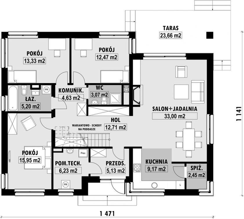 PROJEKT Z BUDOWĄ Istnieje możliwość zaadaptowania tego projektu do technologii prefabrykowanej/modułowej i budowy nawet w 6 miesięcy ze stałym kosztem budowy