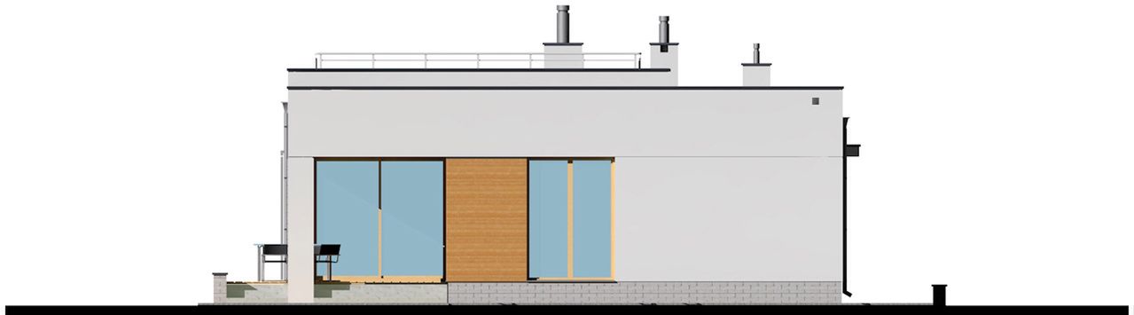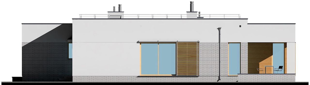 Graficzne opracowanie rzutów poglądowych widocznych na karcie projektu zostało wykonane przez Extradom.pl. Prezentowane przez Extradom.pl wizualizacje wykonane zostały przez autora projektu i należy poczytywać je jedynie za przykład i propozycję wykończenia, wizję architektoniczną autora projektu. Ostateczne wykończenie budynku może nastąpić na wiele sposobów. Szczegółowe rozwiązania zastosowane w oferowanej dokumentacji - w tym również ilość, lokalizacje i wygląd okien, drzwi, kominów - mogą w niewielkim stopniu różnić się od prezentowanej wizualizacji budynku.