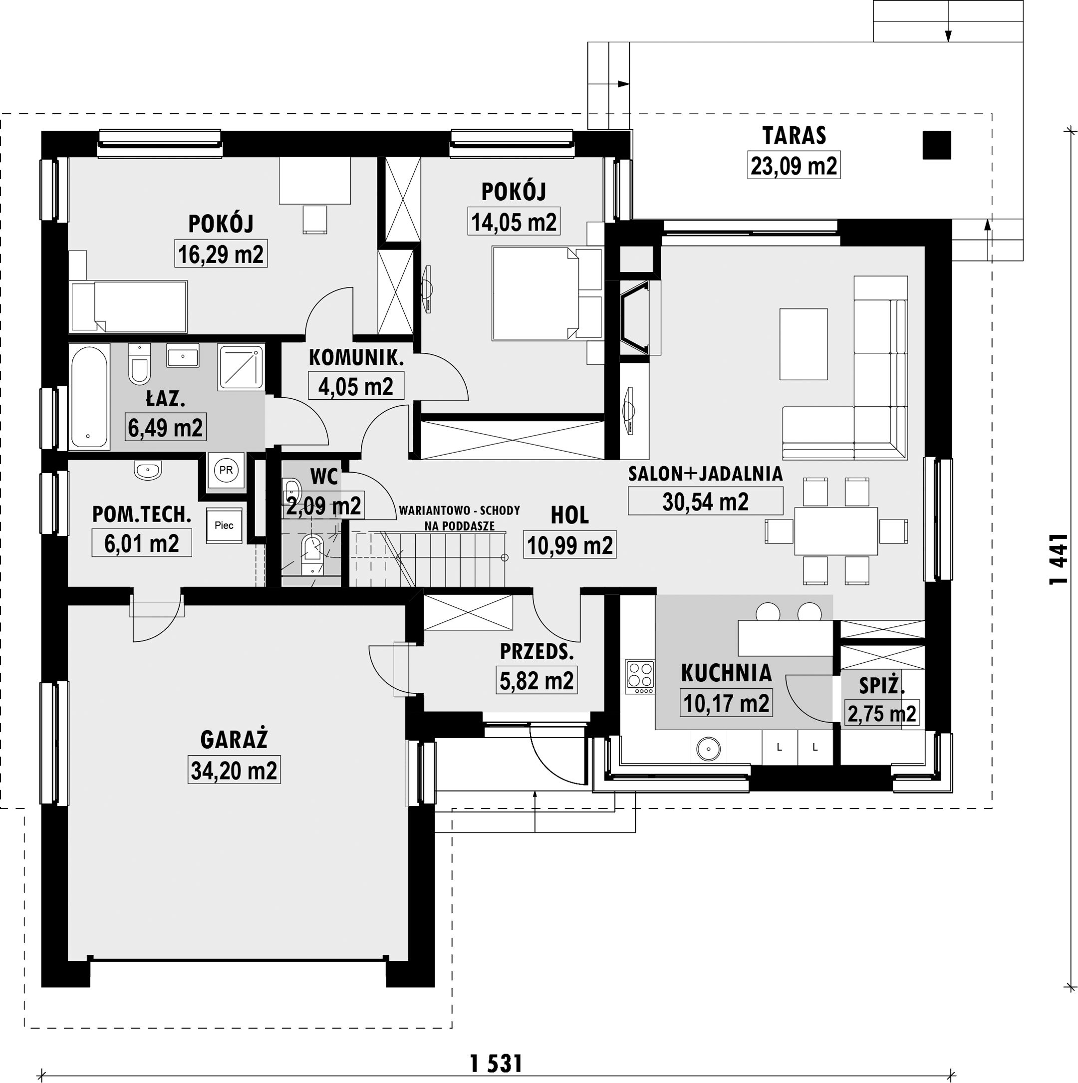 PROJEKT Z BUDOWĄ Istnieje możliwość zaadaptowania tego projektu do technologii prefabrykowanej/modułowej i budowy nawet w 6 miesięcy ze stałym kosztem budowy