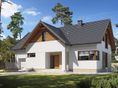 Graficzne opracowanie rzutów poglądowych widocznych na karcie projektu zostało wykonane przez Extradom.pl. Prezentowane przez Extradom.pl wizualizacje wykonane zostały przez autora projektu i należy poczytywać je jedynie za przykład i propozycję wykończenia, wizję architektoniczną autora projektu. Ostateczne wykończenie budynku może nastąpić na wiele sposobów. Szczegółowe rozwiązania zastosowane w oferowanej dokumentacji - w tym również ilość, lokalizacje i wygląd okien, drzwi, kominów - mogą w niewielkim stopniu różnić się od prezentowanej wizualizacji budynku.
