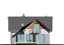 Graficzne opracowanie rzutów poglądowych widocznych na karcie projektu zostało wykonane przez Extradom.pl. Prezentowane przez Extradom.pl wizualizacje wykonane zostały przez autora projektu i należy poczytywać je jedynie za przykład i propozycję wykończenia, wizję architektoniczną autora projektu. Ostateczne wykończenie budynku może nastąpić na wiele sposobów. Szczegółowe rozwiązania zastosowane w oferowanej dokumentacji - w tym również ilość, lokalizacje i wygląd okien, drzwi, kominów - mogą w niewielkim stopniu różnić się od prezentowanej wizualizacji budynku.