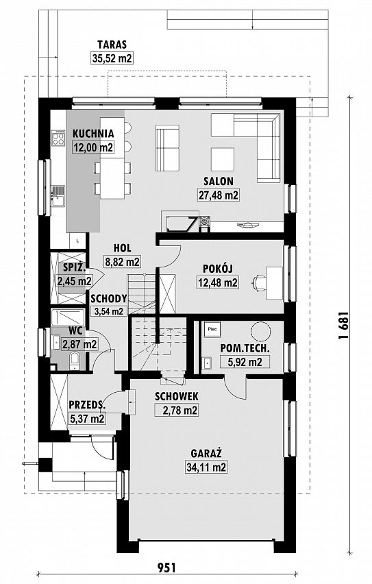 PROJEKT Z BUDOWĄ Istnieje możliwość zaadaptowania tego projektu do technologii prefabrykowanej/modułowej i budowy nawet w 6 miesięcy ze stałym kosztem budowy