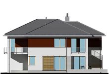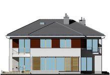 Graficzne opracowanie rzutów poglądowych widocznych na karcie projektu zostało wykonane przez Extradom.pl. Prezentowane przez Extradom.pl wizualizacje wykonane zostały przez autora projektu i należy poczytywać je jedynie za przykład i propozycję wykończenia, wizję architektoniczną autora projektu. Ostateczne wykończenie budynku może nastąpić na wiele sposobów. Szczegółowe rozwiązania zastosowane w oferowanej dokumentacji - w tym również ilość, lokalizacje i wygląd okien, drzwi, kominów - mogą w niewielkim stopniu różnić się od prezentowanej wizualizacji budynku.