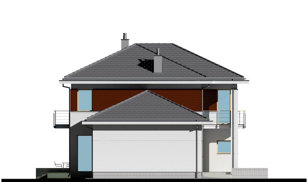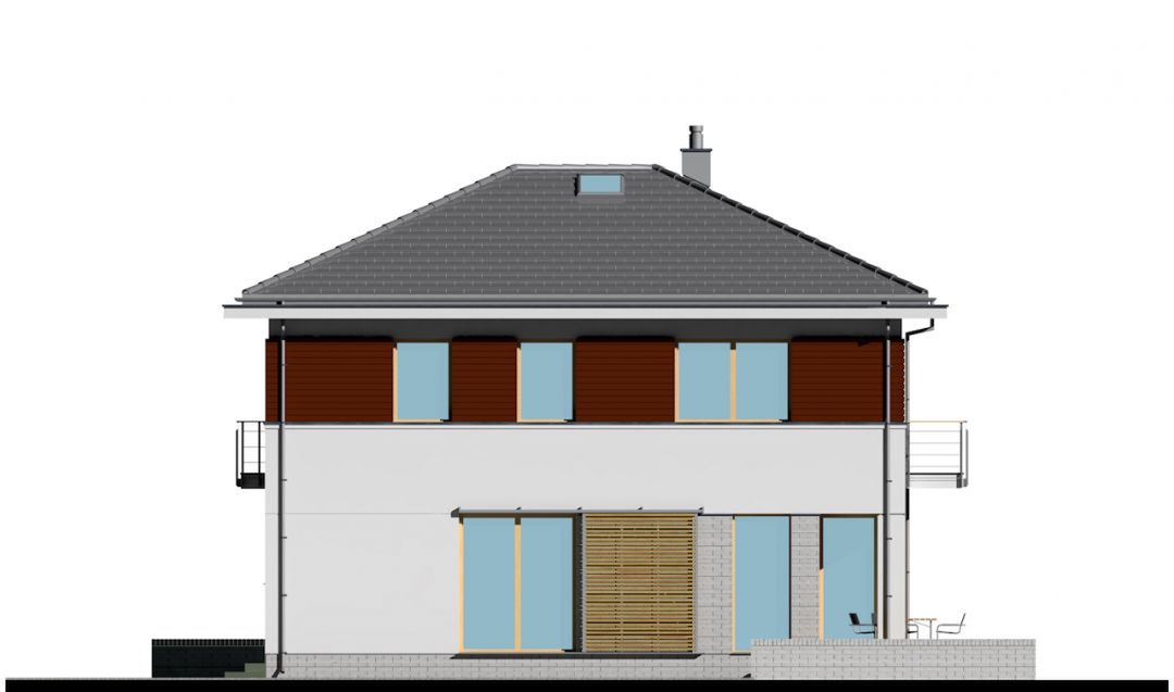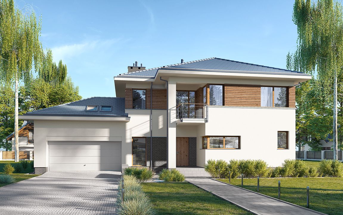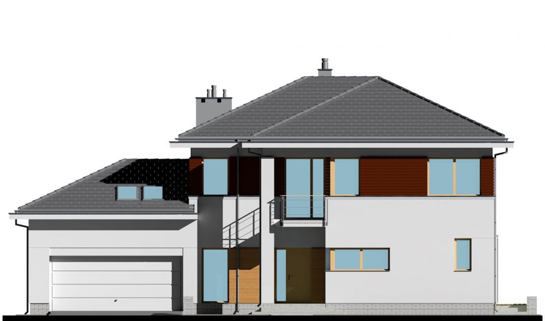 Graficzne opracowanie rzutów poglądowych widocznych na karcie projektu zostało wykonane przez Extradom.pl. Prezentowane przez Extradom.pl wizualizacje wykonane zostały przez autora projektu i należy poczytywać je jedynie za przykład i propozycję wykończenia, wizję architektoniczną autora projektu. Ostateczne wykończenie budynku może nastąpić na wiele sposobów. Szczegółowe rozwiązania zastosowane w oferowanej dokumentacji - w tym również ilość, lokalizacje i wygląd okien, drzwi, kominów - mogą w niewielkim stopniu różnić się od prezentowanej wizualizacji budynku.
