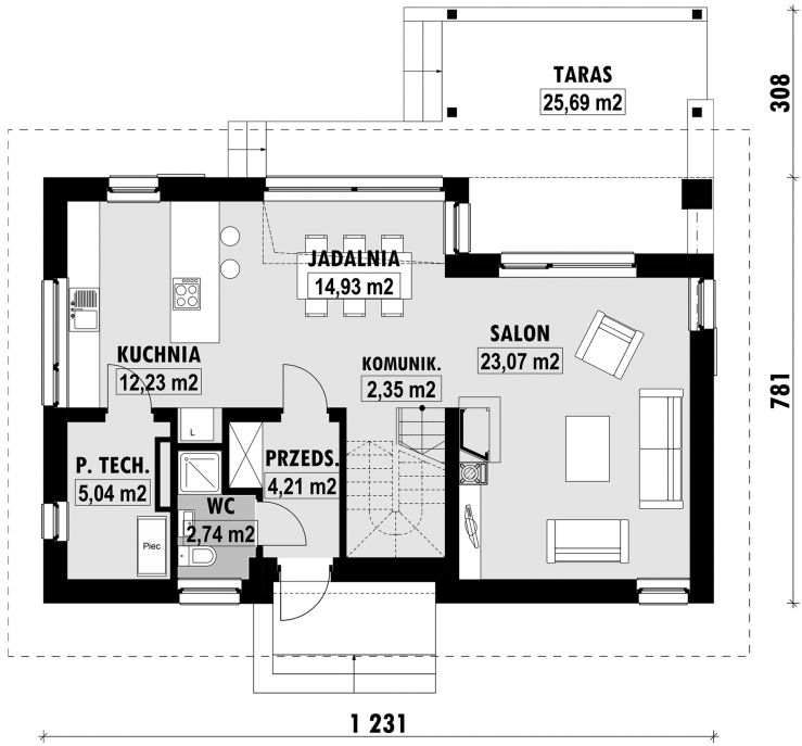PROJEKT Z BUDOWĄ Istnieje możliwość zaadaptowania tego projektu do technologii prefabrykowanej/modułowej i budowy nawet w 6 miesięcy ze stałym kosztem budowy