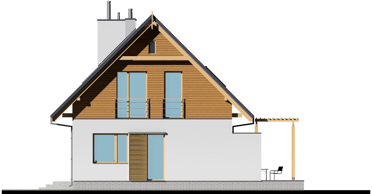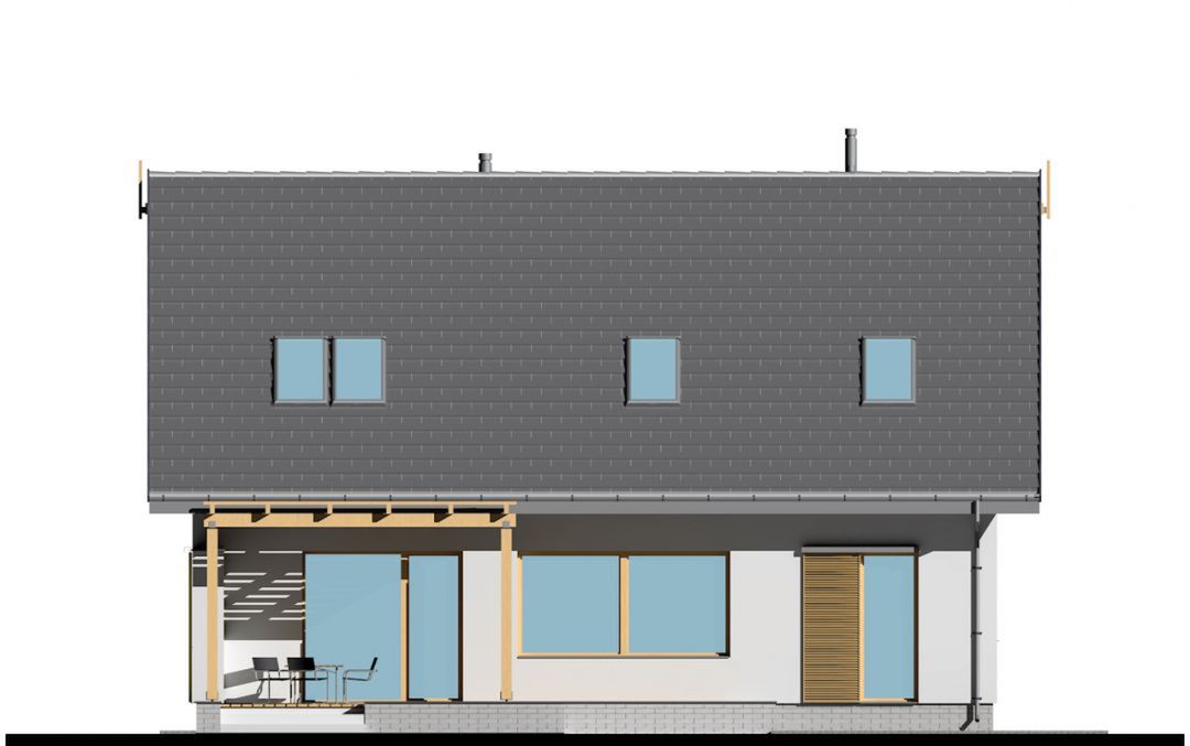 Graficzne opracowanie rzutów poglądowych widocznych na karcie projektu zostało wykonane przez Extradom.pl. Prezentowane przez Extradom.pl wizualizacje wykonane zostały przez autora projektu i należy poczytywać je jedynie za przykład i propozycję wykończenia, wizję architektoniczną autora projektu. Ostateczne wykończenie budynku może nastąpić na wiele sposobów. Szczegółowe rozwiązania zastosowane w oferowanej dokumentacji - w tym również ilość, lokalizacje i wygląd okien, drzwi, kominów - mogą w niewielkim stopniu różnić się od prezentowanej wizualizacji budynku.