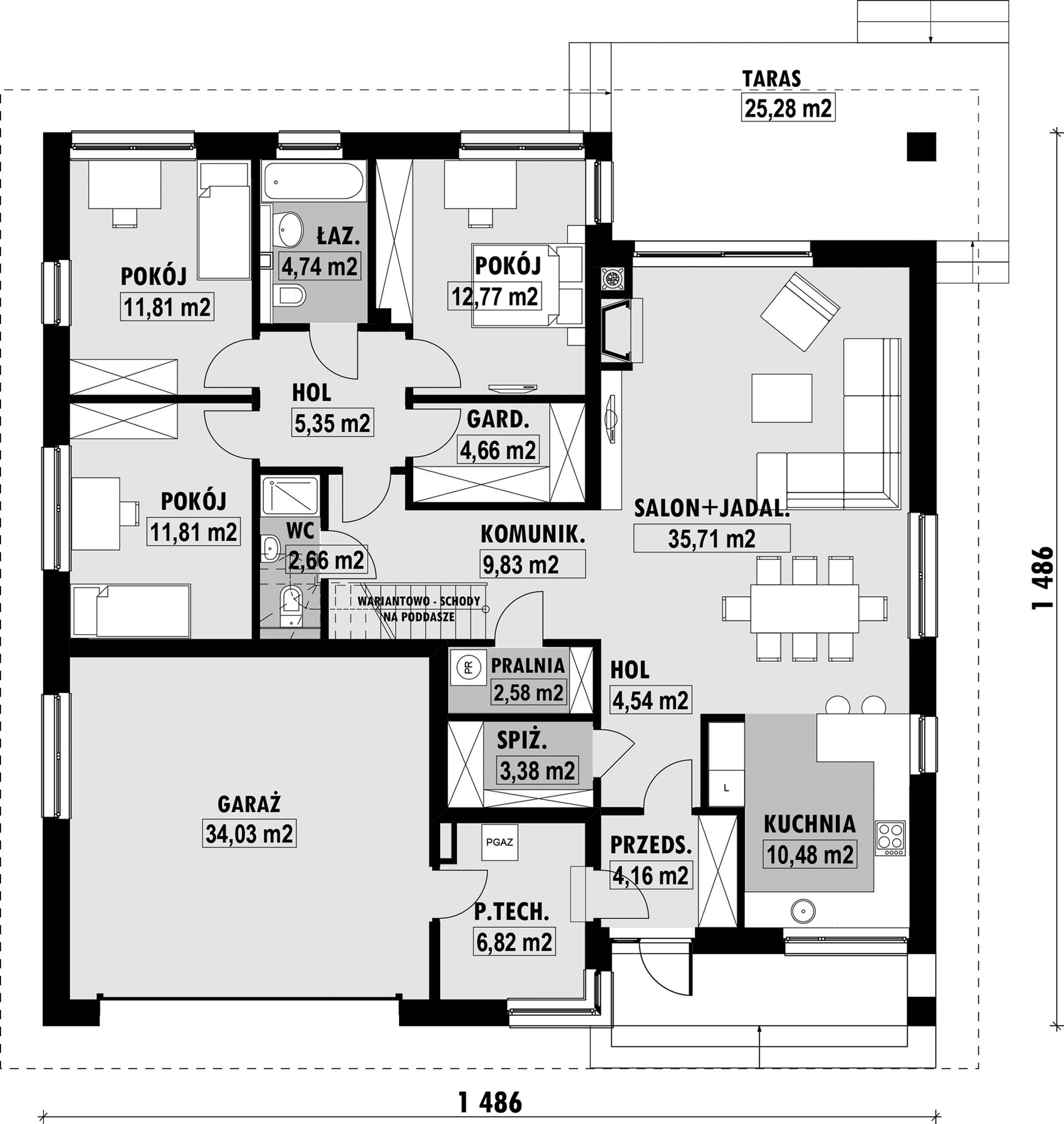 PROJEKT Z BUDOWĄ Istnieje możliwość zaadaptowania tego projektu do technologii prefabrykowanej/modułowej i budowy nawet w 6 miesięcy ze stałym kosztem budowy