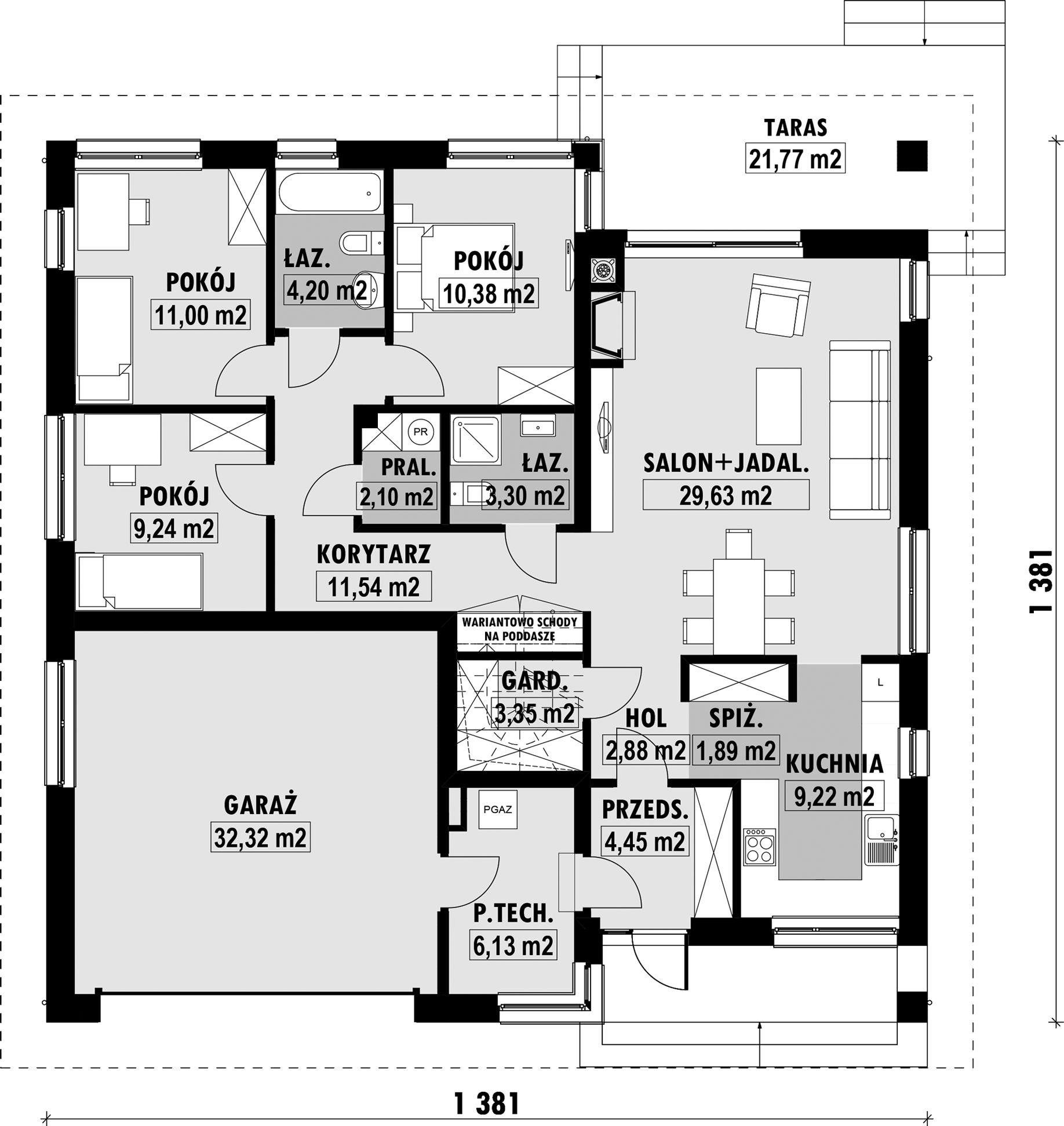 PROJEKT Z BUDOWĄ Istnieje możliwość zaadaptowania tego projektu do technologii prefabrykowanej/modułowej i budowy nawet w 6 miesięcy ze stałym kosztem budowy