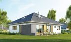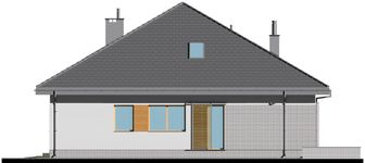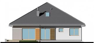 Graficzne opracowanie rzutów poglądowych widocznych na karcie projektu zostało wykonane przez Extradom.pl. Prezentowane przez Extradom.pl wizualizacje wykonane zostały przez autora projektu i należy poczytywać je jedynie za przykład i propozycję wykończenia, wizję architektoniczną autora projektu. Ostateczne wykończenie budynku może nastąpić na wiele sposobów. Szczegółowe rozwiązania zastosowane w oferowanej dokumentacji - w tym również ilość, lokalizacje i wygląd okien, drzwi, kominów - mogą w niewielkim stopniu różnić się od prezentowanej wizualizacji budynku.