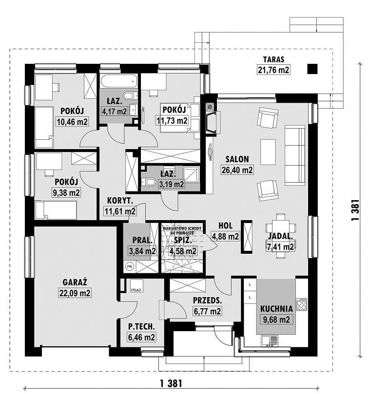 PROJEKT Z BUDOWĄ Istnieje możliwość zaadaptowania tego projektu do technologii prefabrykowanej/modułowej i budowy nawet w 6 miesięcy ze stałym kosztem budowy