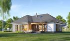 Graficzne opracowanie rzutów poglądowych widocznych na karcie projektu zostało wykonane przez Extradom.pl. Prezentowane przez Extradom.pl wizualizacje wykonane zostały przez autora projektu i należy poczytywać je jedynie za przykład i propozycję wykończenia, wizję architektoniczną autora projektu. Ostateczne wykończenie budynku może nastąpić na wiele sposobów. Szczegółowe rozwiązania zastosowane w oferowanej dokumentacji - w tym również ilość, lokalizacje i wygląd okien, drzwi, kominów - mogą w niewielkim stopniu różnić się od prezentowanej wizualizacji budynku.