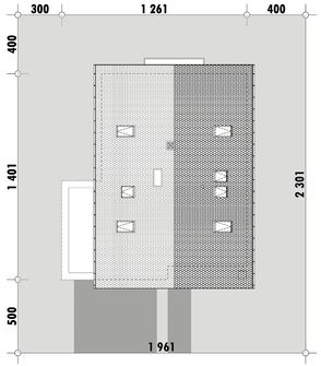 Graficzne opracowanie rzutów poglądowych widocznych na karcie projektu zostało wykonane przez Extradom.pl. Prezentowane przez Extradom.pl wizualizacje wykonane zostały przez autora projektu i należy poczytywać je jedynie za przykład i propozycję wykończenia, wizję architektoniczną autora projektu. Ostateczne wykończenie budynku może nastąpić na wiele sposobów. Szczegółowe rozwiązania zastosowane w oferowanej dokumentacji - w tym również ilość, lokalizacje i wygląd okien, drzwi, kominów - mogą w niewielkim stopniu różnić się od prezentowanej wizualizacji budynku.