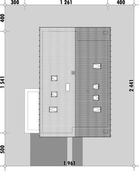 Graficzne opracowanie rzutów poglądowych widocznych na karcie projektu zostało wykonane przez Extradom.pl. Prezentowane przez Extradom.pl wizualizacje wykonane zostały przez autora projektu i należy poczytywać je jedynie za przykład i propozycję wykończenia, wizję architektoniczną autora projektu. Ostateczne wykończenie budynku może nastąpić na wiele sposobów. Szczegółowe rozwiązania zastosowane w oferowanej dokumentacji - w tym również ilość, lokalizacje i wygląd okien, drzwi, kominów - mogą w niewielkim stopniu różnić się od prezentowanej wizualizacji budynku.