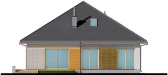 Graficzne opracowanie rzutów poglądowych widocznych na karcie projektu zostało wykonane przez Extradom.pl. Prezentowane przez Extradom.pl wizualizacje wykonane zostały przez autora projektu i należy poczytywać je jedynie za przykład i propozycję wykończenia, wizję architektoniczną autora projektu. Ostateczne wykończenie budynku może nastąpić na wiele sposobów. Szczegółowe rozwiązania zastosowane w oferowanej dokumentacji - w tym również ilość, lokalizacje i wygląd okien, drzwi, kominów - mogą w niewielkim stopniu różnić się od prezentowanej wizualizacji budynku.